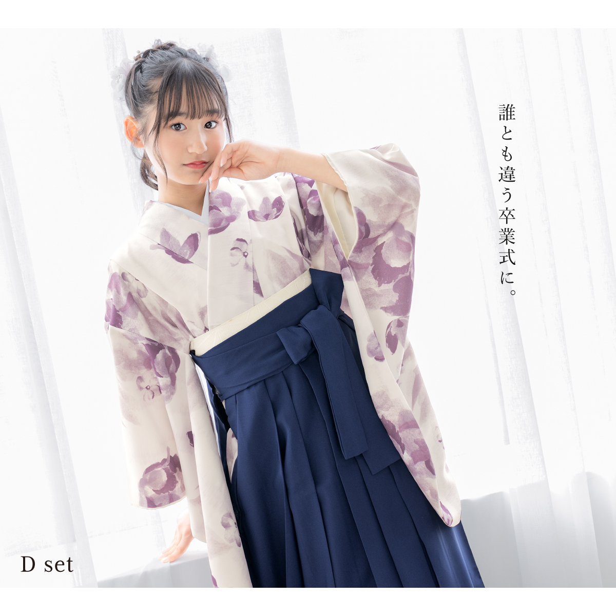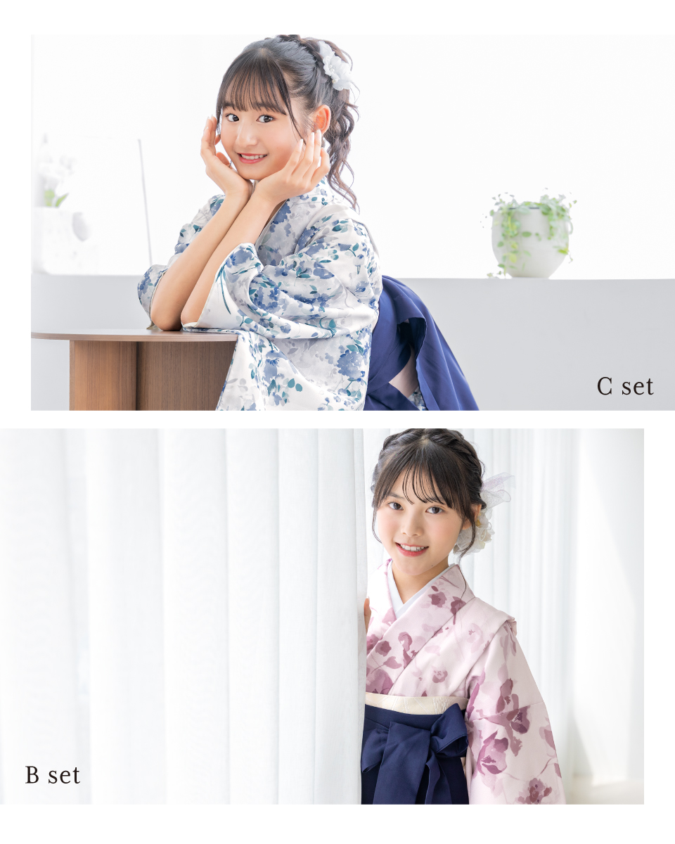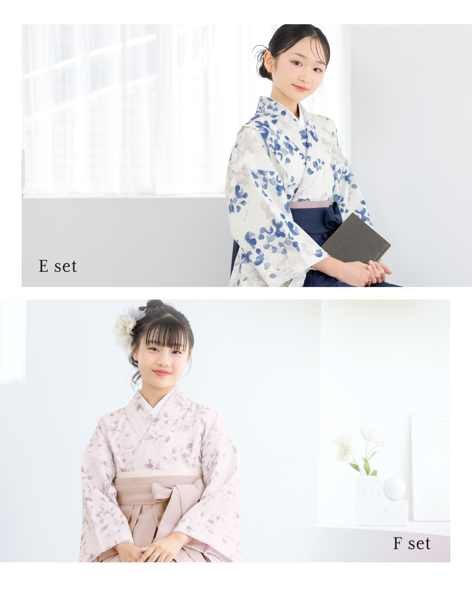 卒業式や大切な記念日を彩る袴セットです。内容は【着物・袴・下帯・襦袢】の4点セットです。着物は、身丈が短く動きやすい半着タイプです。袴は、合わせやすいシンプルな無地です。中仕切りがない行灯袴(あんどんはかま)ですので、洋服のスカートと同じようにお召しいただけます。ご自宅でもお手入れしやすいので、着物での一日を存分にお楽しみいただけます。こだわりの袴セットで、思い出となる記念日をお迎えください。