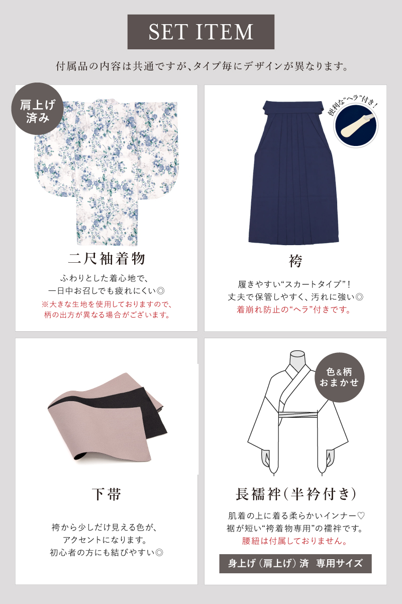 ※【着物・袴・襦袢・下帯】のセットです。セット内容の一部変更や、それに伴う値引きは承っておりません。