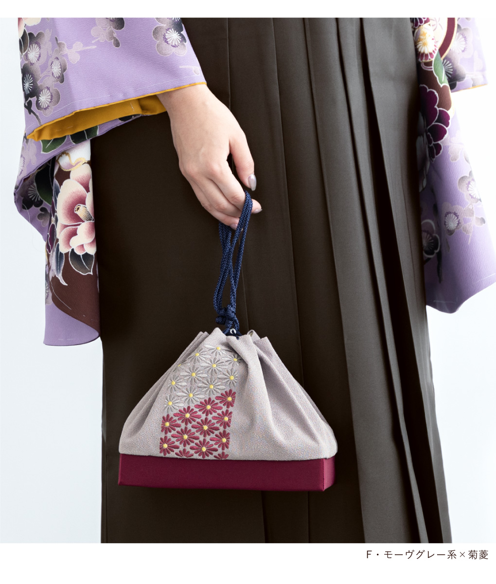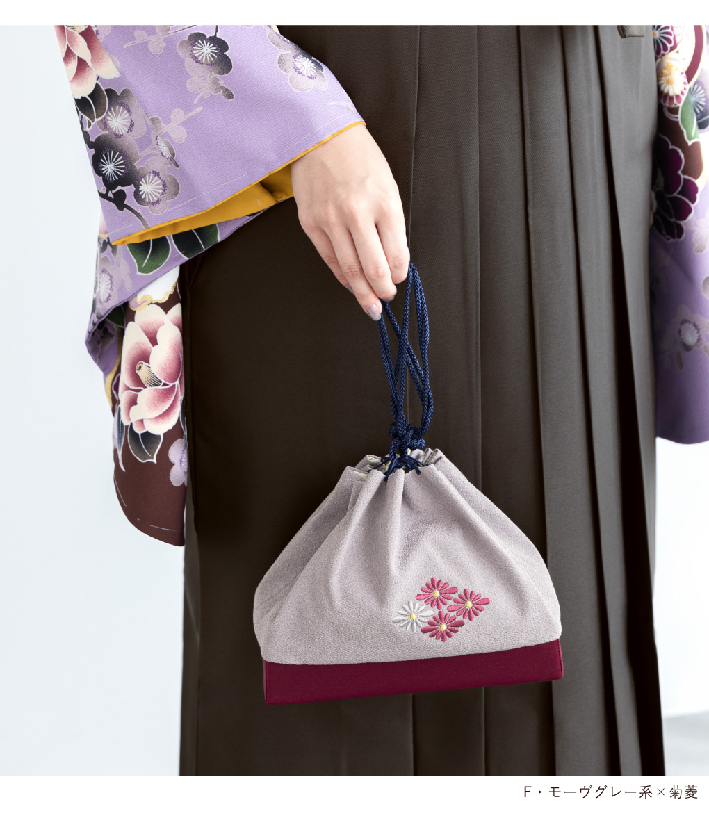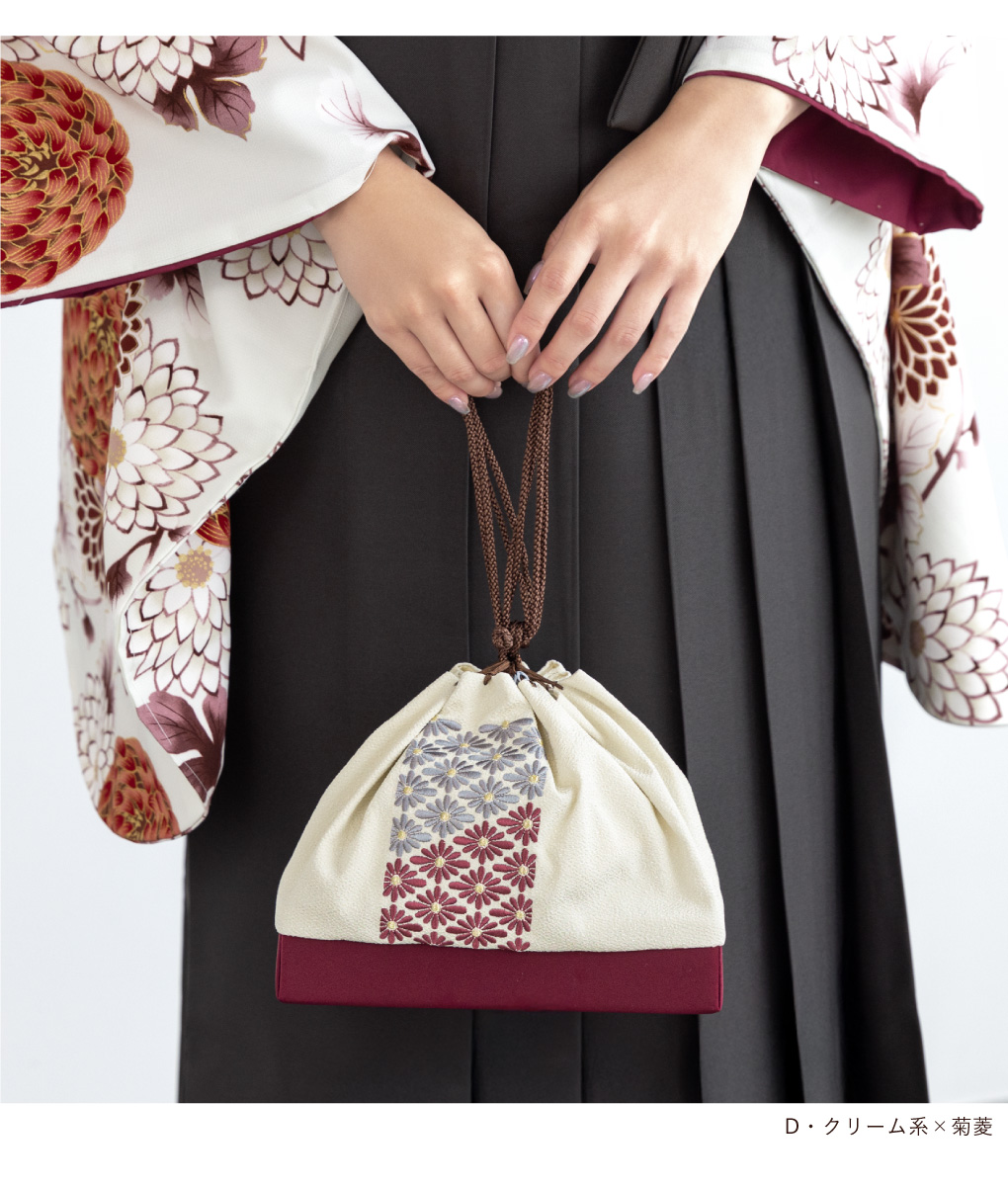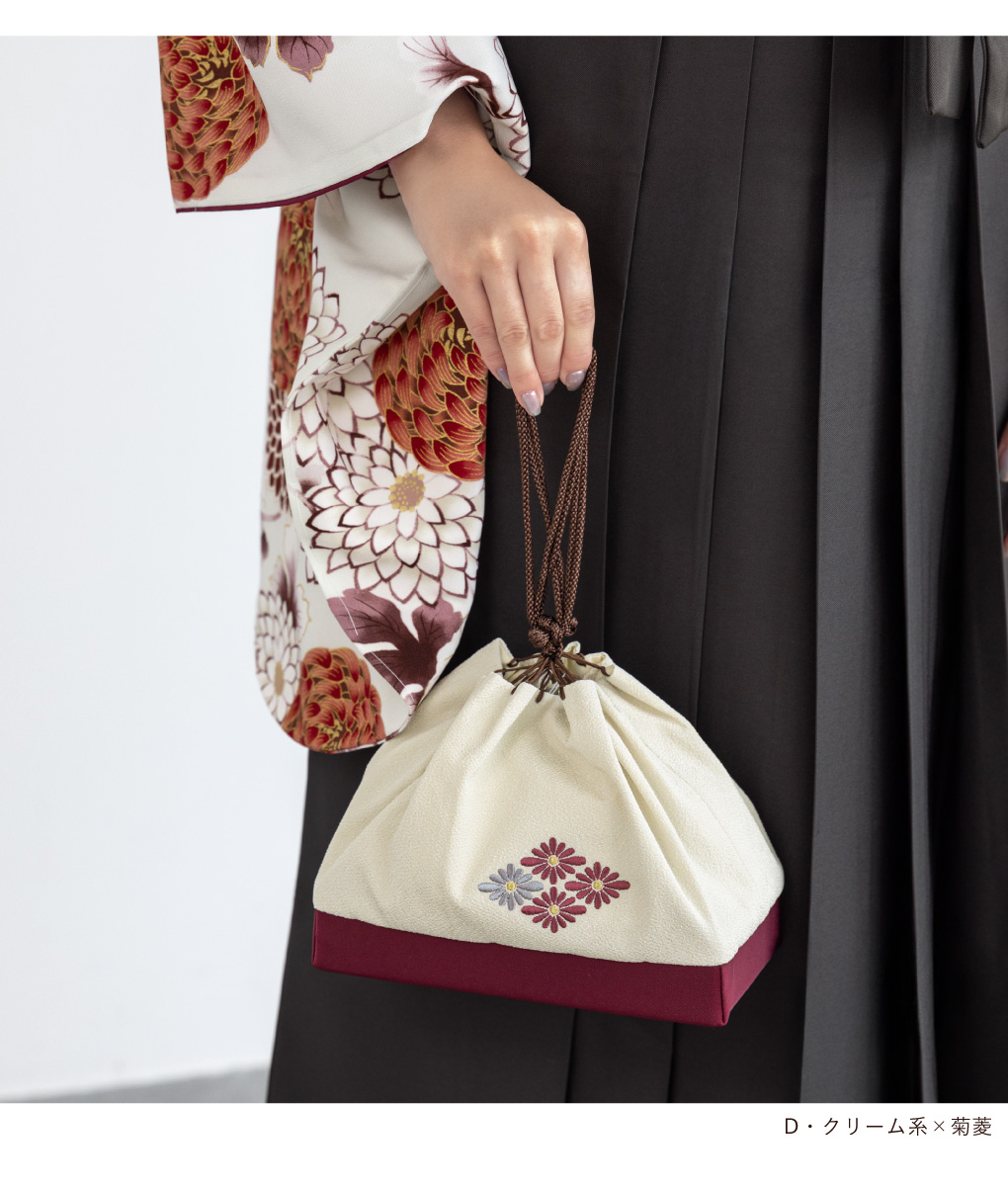 巾着バッグ レディース 袴巾着 袴バッグ 卒業式 卒業袴 バッグ 着物 和装バッグ ちりめん 縮緬 刺繍 菊 桜 花柄 和柄 ホワイト ベージュ ピンク グレー レトロ くすみカラー 四角 箱型 送料無料