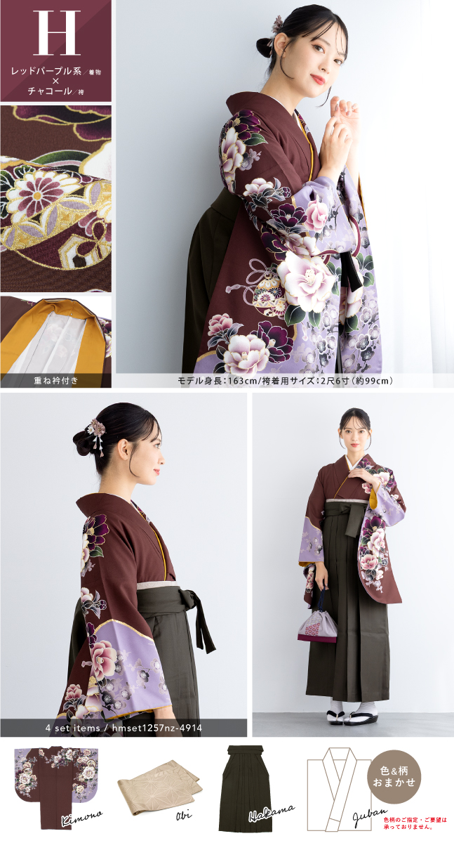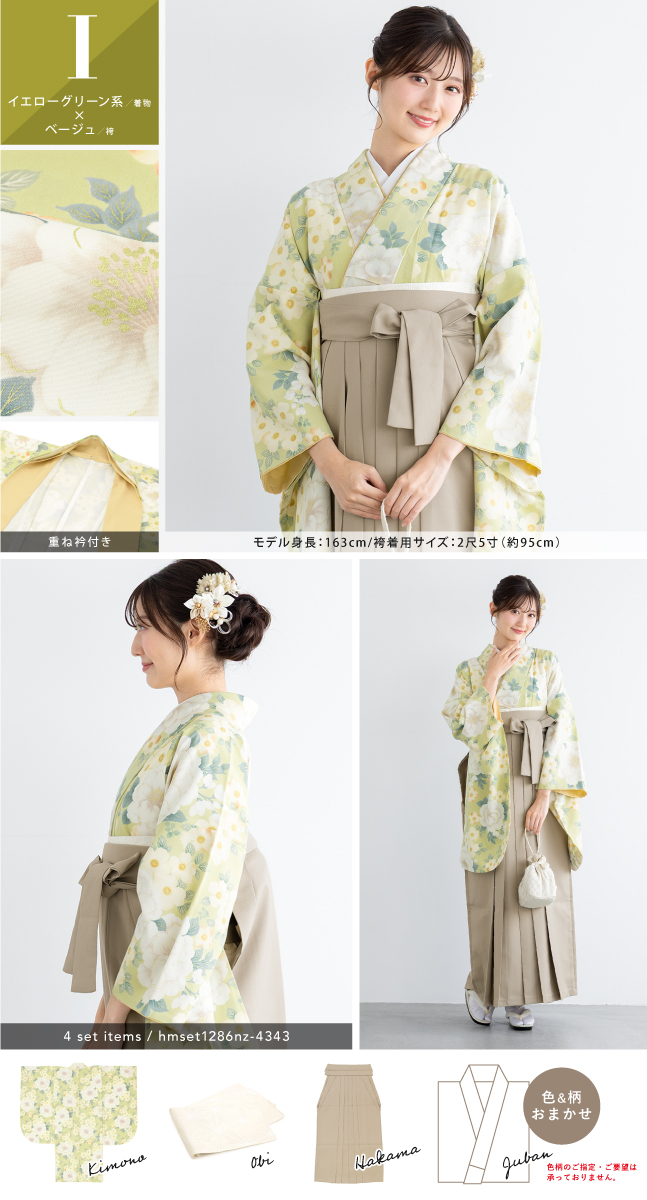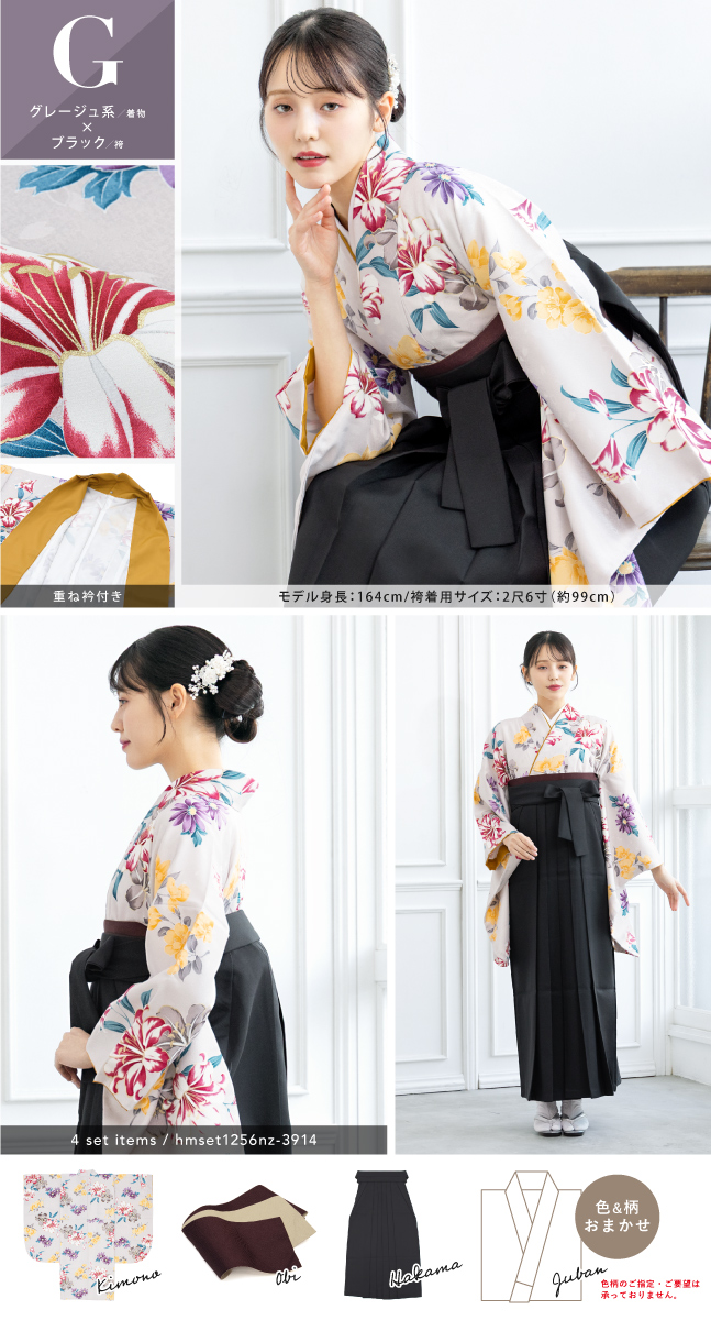 袴セット 卒業式 レディース 女の子 ジュニア 子供 4点セット 着物セット 白 赤 紫 青 緑 紺 黄 黒 ベージュ グレー 椿 梅 牡丹 桜 花柄 大学卒業式 購入 販売 創美苑 送料無料 身長138から175対応