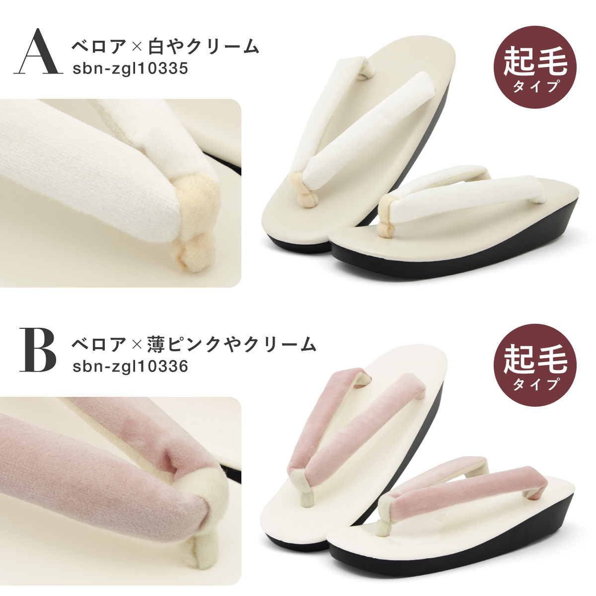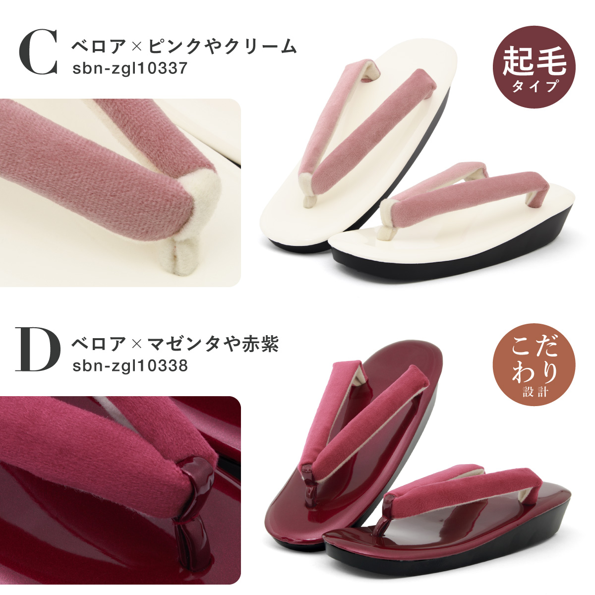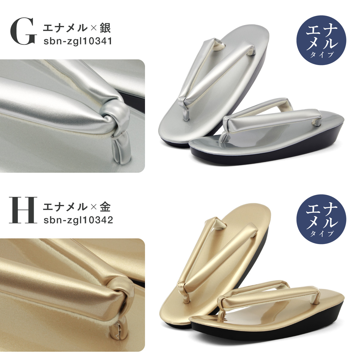 やさしい履き心地のウレタンソールを使用した女性用草履です。つややかなエナメルの天と同じくエナメルの鼻緒や、べロア生地のふっくらとした太鼻緒は、シンプルでお着物に合わせやすい無地です。小判型の草履底に使われているポリウレタンは、汚れに強く、お手入れしやすいのが特徴です。コーディネートしやすく、小紋などのカジュアルな装いにおすすめします。