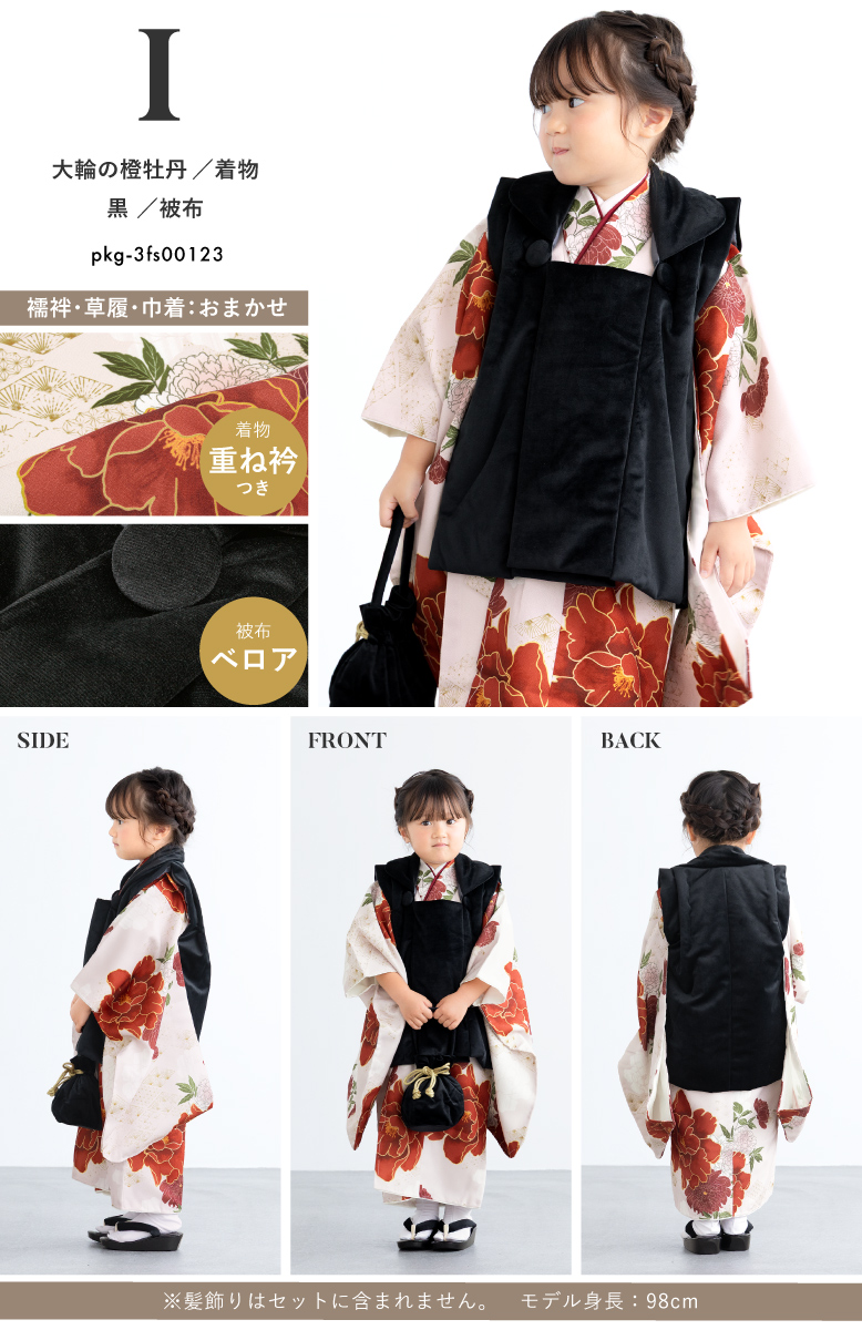 七五三 着物 被布コート セット 3歳 女の子 floro 2025新作 レトロ 和モダン 花柄 白 赤 緑 黒 紺 ピンク 椿 牡丹 ベロア かわいい 女児 3才用 販売 購入 送料無料
