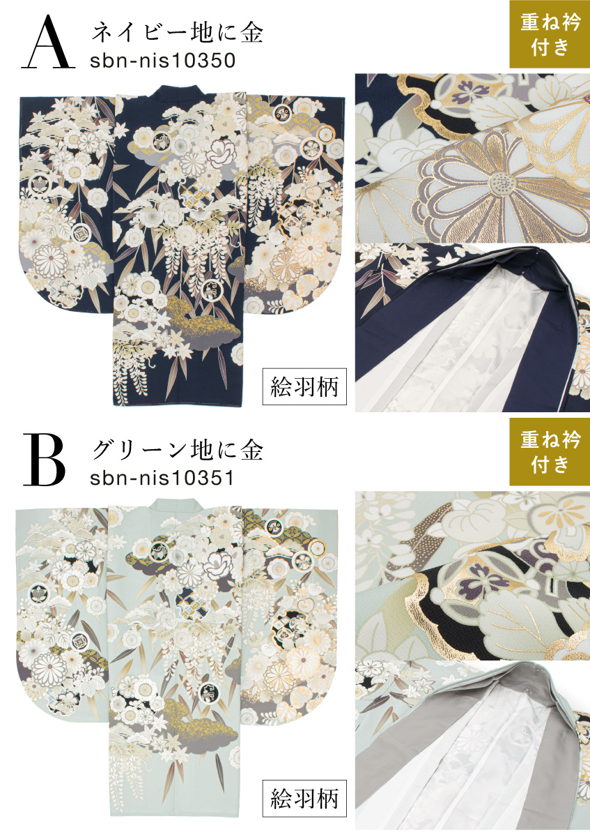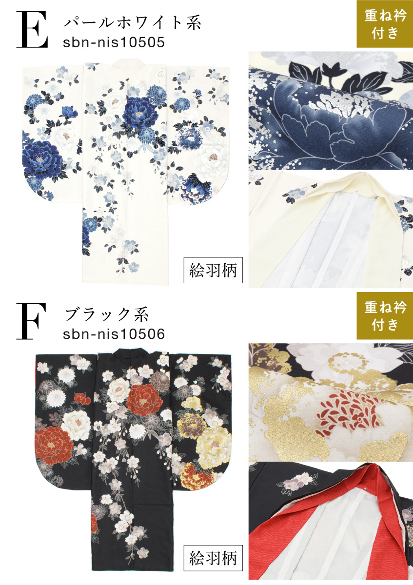 ※着物の柄部分は大きな生地を使用して作られておりますので、色や柄の出方、模様の配置等が画像と異なる場合がございます。