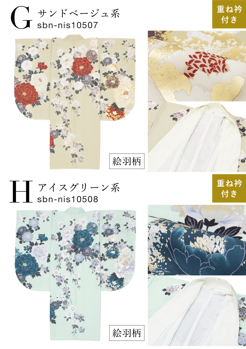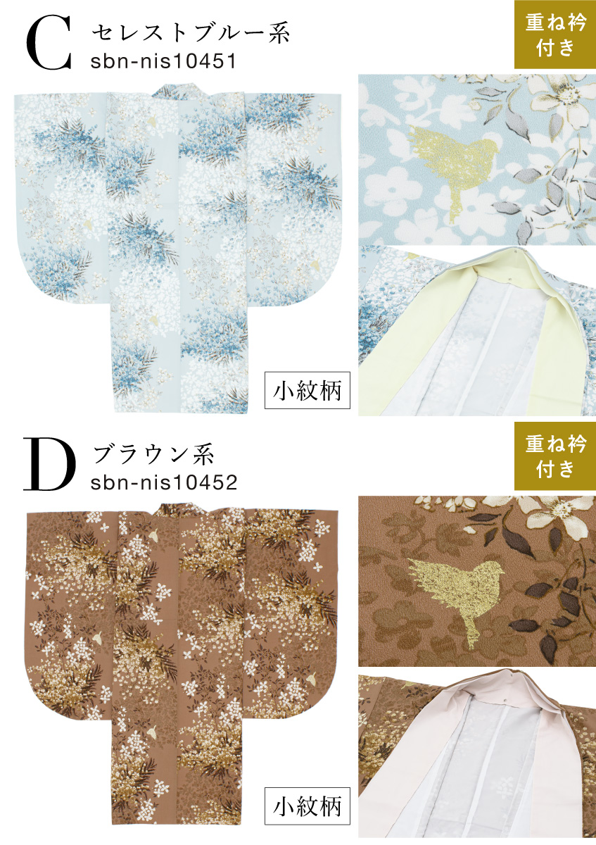 二尺袖着物 単品 レディース 女性 大人 卒業式 袴 小振袖 袴用 紺 緑 水色 青 茶色 白 黒 ベージュ 牡丹 桜 菊 藤 雪輪 ボタニカル 花柄 ショート丈 重ね衿付き 購入 販売 創美苑 送料無料