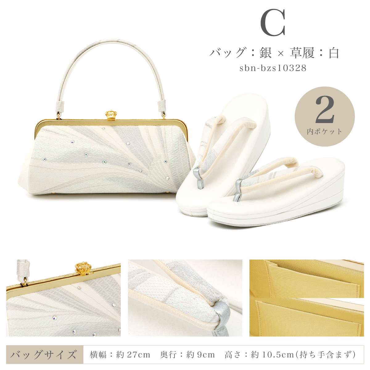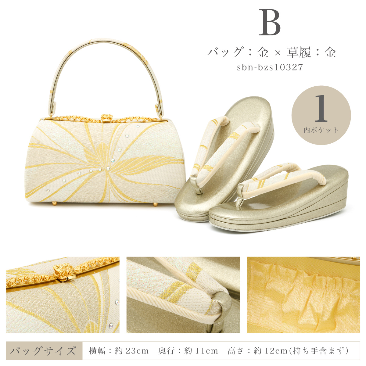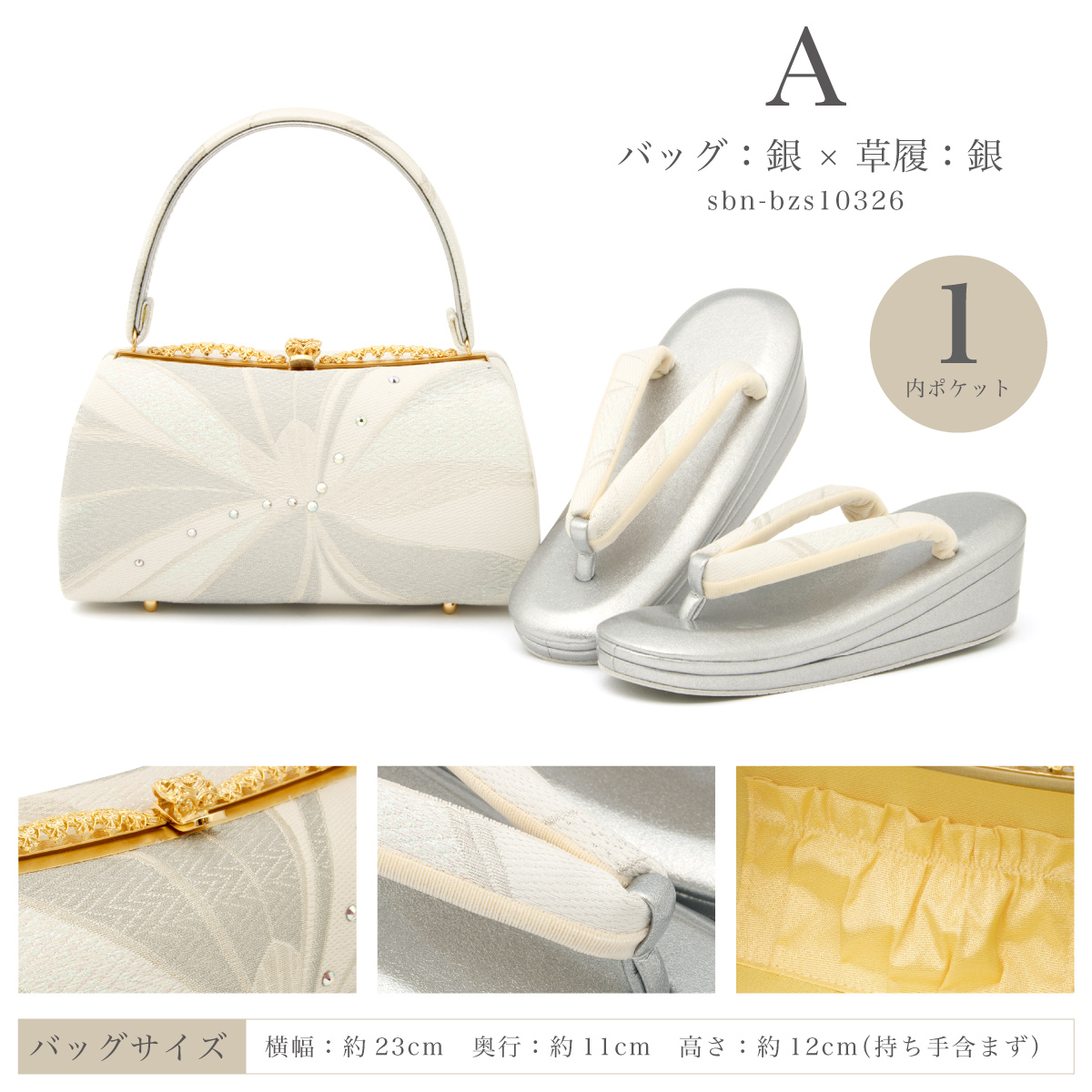 草履バッグセット レディース 成人式 卒業式 振袖 袴 金 銀 白 正絹 西陣織 ラインストーン 三枚芯 紗織 Mサイズ Lサイズ 日本製 送料無料