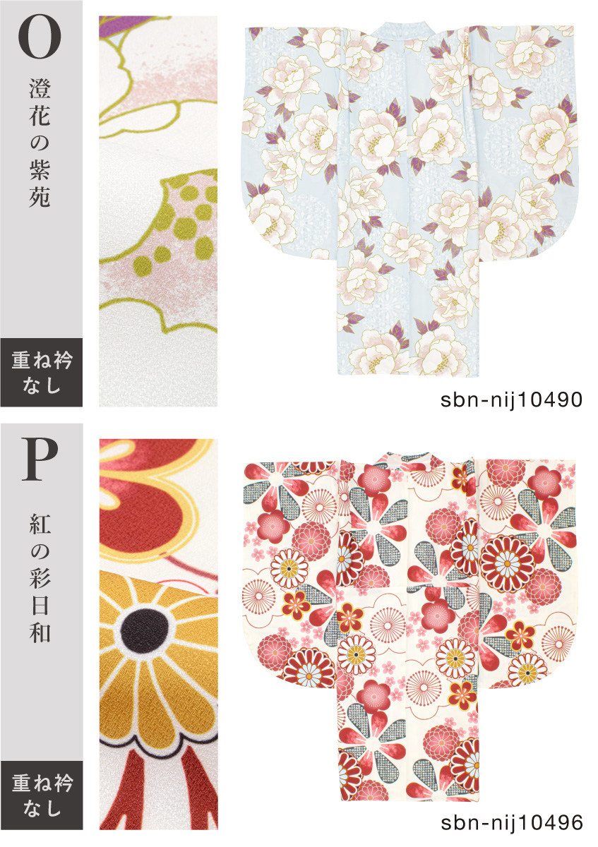 ※着物の柄部分は大きな生地を使用して作られておりますので、色や柄の出方、模様の配置等が画像と異なる場合がございます。