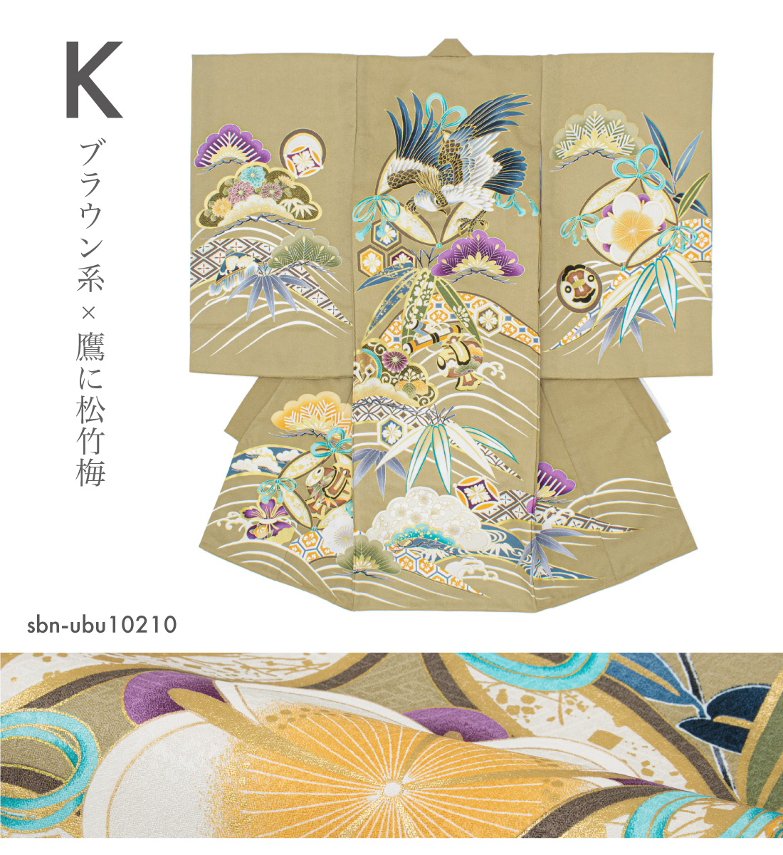お宮参り 産着 初着 祝い着 着物 男の子 男児 赤ちゃん ブルー グリーン ブラウン パープル ベージュ 青 緑 紫 鷹 兜 束ね熨斗 荒波 松竹梅 金駒刺繍 ベビー 赤ちゃん 販売 購入 送料無料