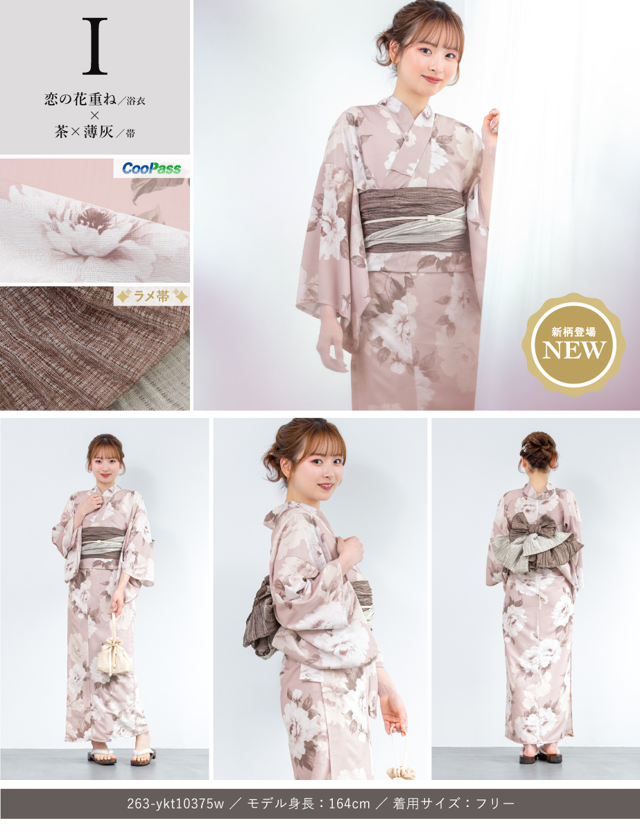 SOUBIENのプライベートブランド『floro by SOUBIEN』(フローロ)の浴衣を合わせた華やかな浴衣セットです。『floro by SOUBIEN』は、移りゆく和装トレンドの最先端を常に追い求め「欲しい」「着てみたい」を作り出す、SOUBIENのプライベートブランドです。ジャンルや系統に縛られず、あらゆるシーンに求められる和装スタイルを展開し、今流行りを押さえ、和装のお洒落を魅せたいという想いをコンセプトに真心を込めて作りました。