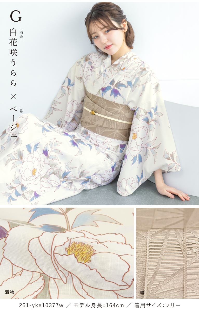 SOUBIENのプライベートブランド『floro by SOUBIEN』(フローロ)の浴衣を合わせた華やかな浴衣セットです。『floro by SOUBIEN』は、移りゆく和装トレンドの最先端を常に追い求め「欲しい」「着てみたい」を作り出す、SOUBIENのプライベートブランドです。ジャンルや系統に縛られず、あらゆるシーンに求められる和装スタイルを展開し、今流行りを押さえ、和装のお洒落を魅せたいという想いをコンセプトに真心を込めて作りました。