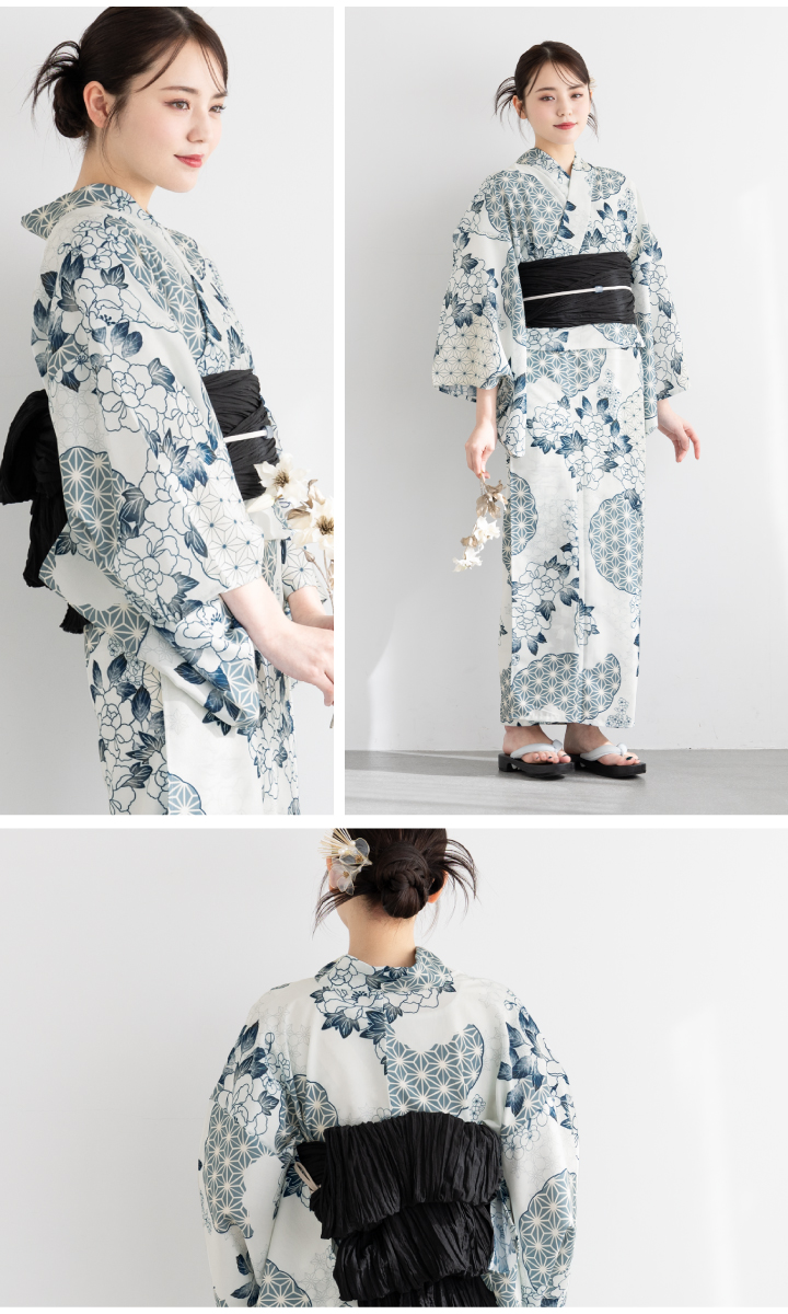 二部式浴衣(上衣+下衣+おはしょり布)・帯・伊達締め