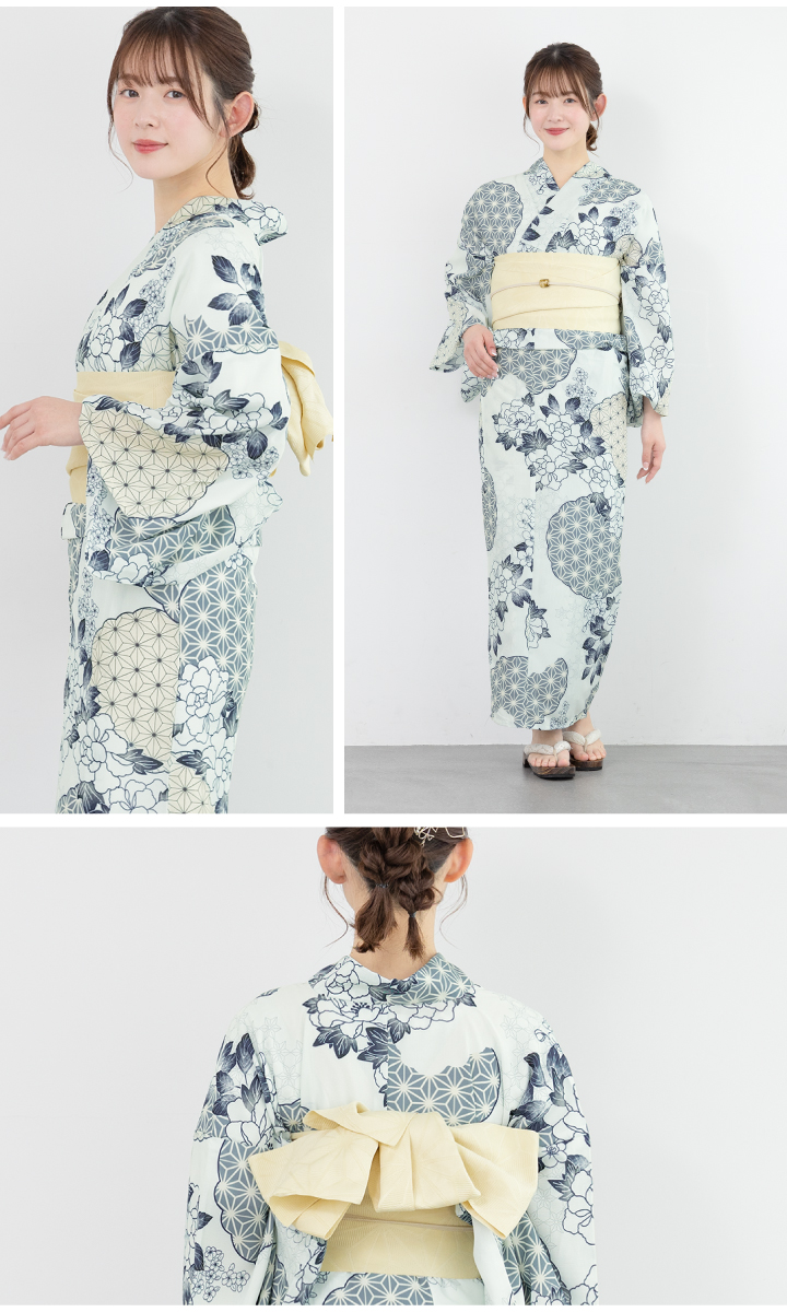 二部式浴衣(上衣+下衣+おはしょり布)・帯・伊達締め