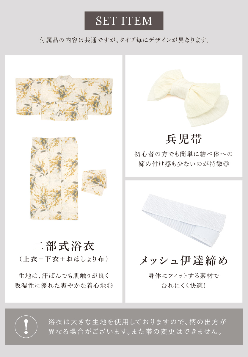 ※製造の都合上、浴衣とおはしょり布の色味が若干異なる場合があります。予めご了承ください。