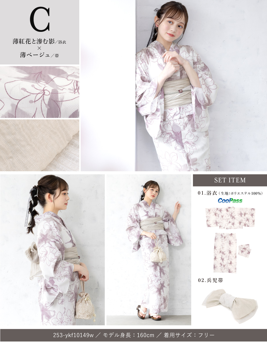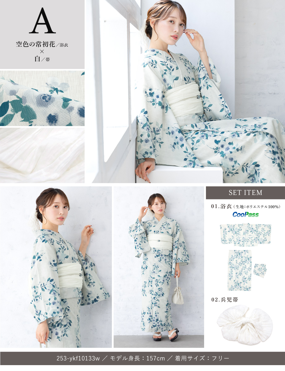 浴衣 セット レディース 二部式 セパレート 浴衣セット 兵児帯 2026 floro 簡単 悩まない 誰でも 涼しい 白 灰色 大人 おしゃれ 可愛い フリー 送料無料