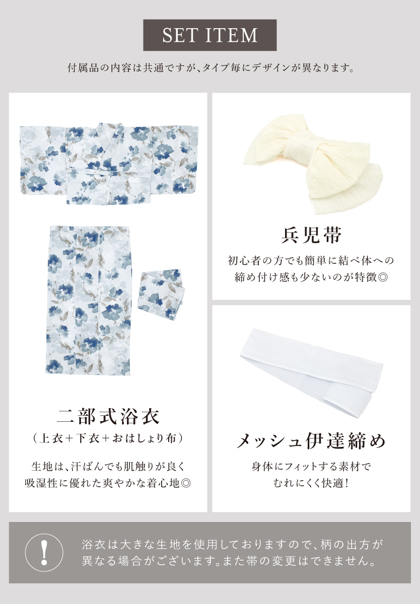 ※製造の都合上、浴衣とおはしょり布の色味が若干異なる場合があります。予めご了承ください。
