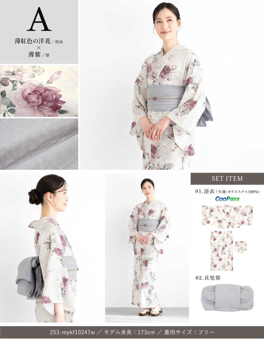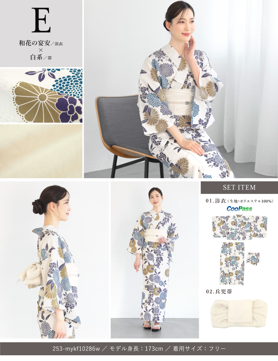 浴衣 セット レディース 二部式 セパレート 浴衣セット 兵児帯 2025 floro 簡単 悩まない 誰でも 涼しい 白 黒 青 ピンク グレー フリー 送料無料