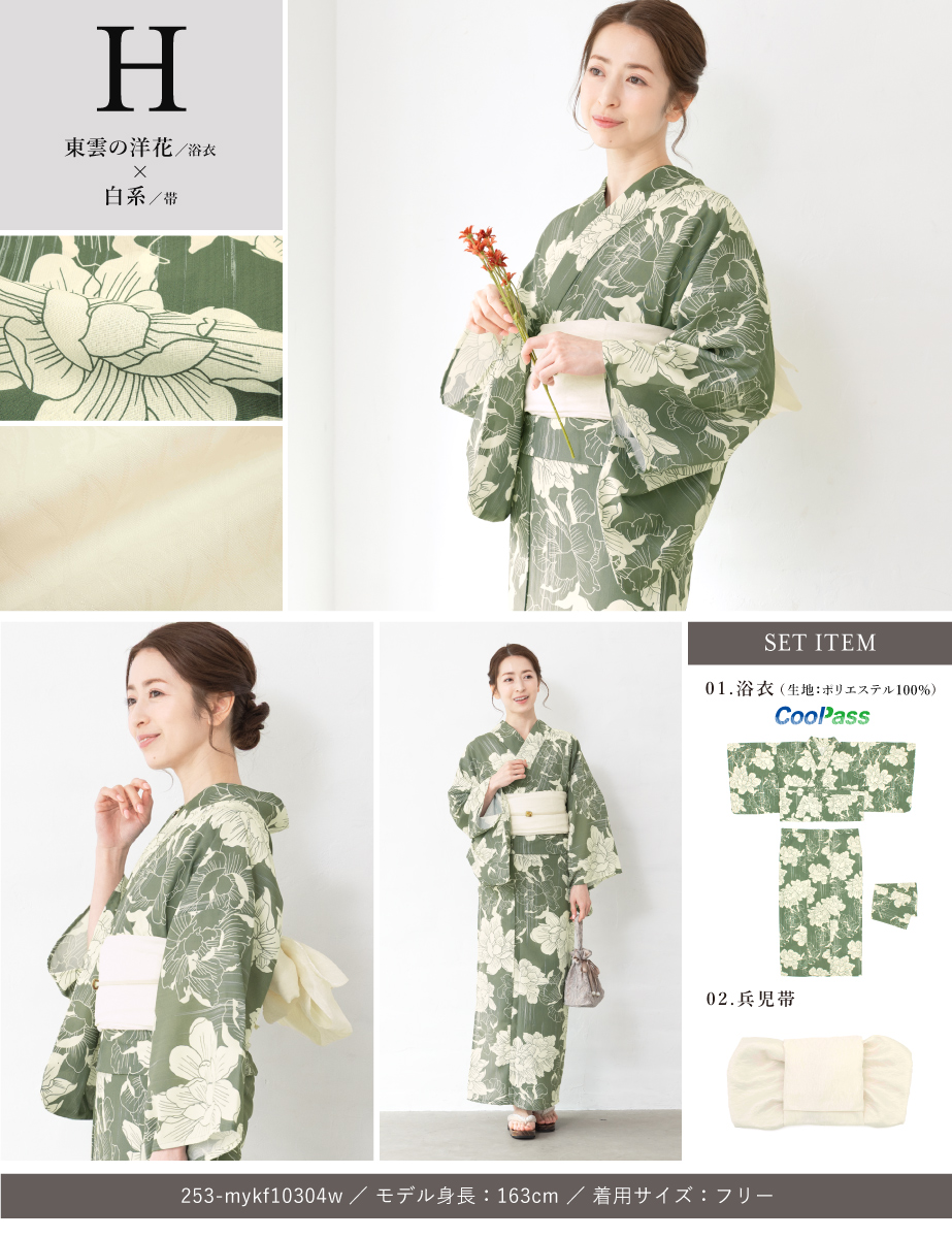 簡単着付け セパレート浴衣 レディース セット 3点セット 2026 浴衣 帯 伊達締め 浴衣セット 女性 二部式浴衣 グリーン ブルー くすみ 花柄 着付け 簡単 フリー floro 140 150 160 創美苑 送料無料