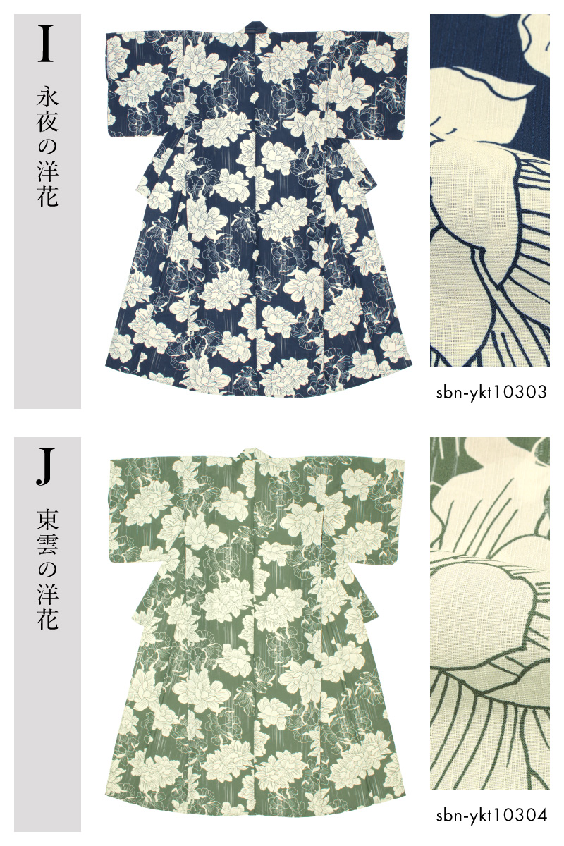 きもの館SOUBIENのプライベートブランド『floro by SOUBIEN』(フローロ)の華やかな女性用浴衣です。織柄の生地に、はんなりとした花々などが映えるモダンなデザインです。生地は変わり織りで、ひんやりとした肌触りで、吸汗性と速乾性の繊維のCoolPassを使用しています。適度な透け感と軽さで、熱気や湿気もすっと逃がしてくれます。お祭りや花火大会など夏のお出かけの際、清涼感のある着心地が続きます。仕立て上がりですので、お届け後すぐにお召しいただけて便利です。