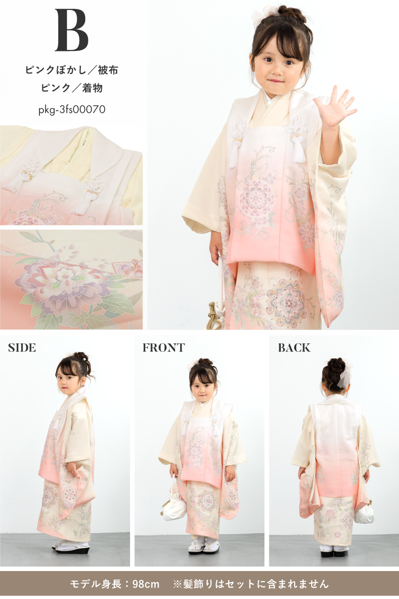 七五三 着物 被布コート セット 3歳 女の子 2025新作 モダン 和柄 水色 ピンク ブルー ぼかし 花唐草 かわいい おしゃれ 女児 3才 販売 購入 送料無料