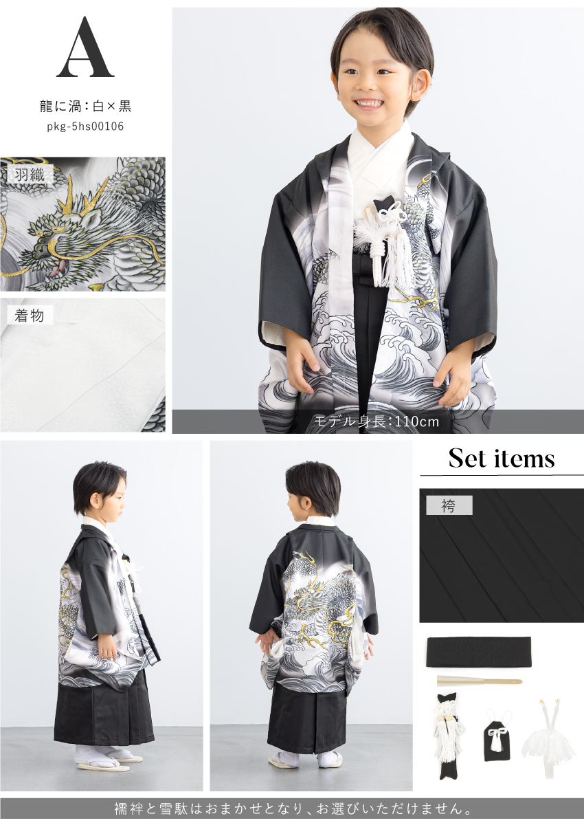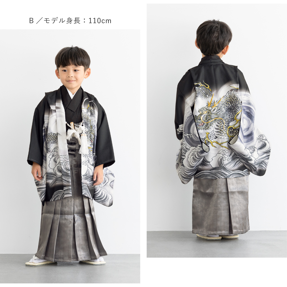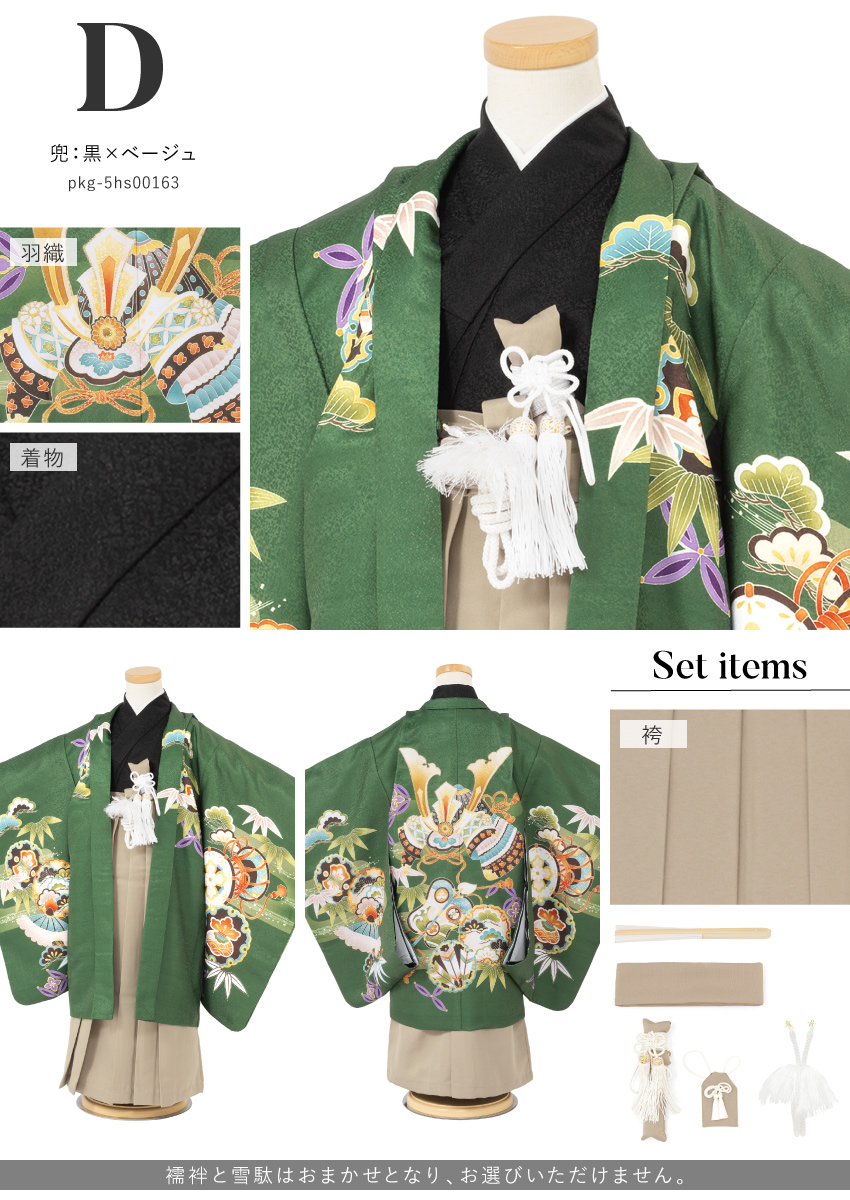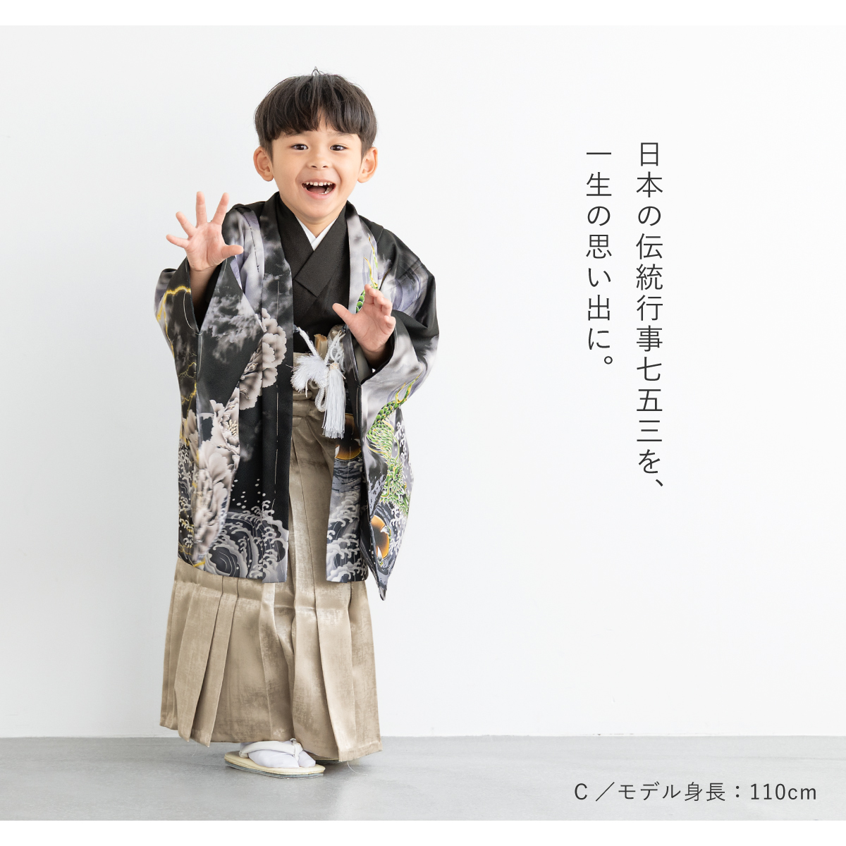 七五三 着物 男の子 5歳 袴セット 羽織 袴 襦袢 帯 雪駄 セット 黒 白 緑 グレー ゴールド ベージュ 龍 兜 和柄 男児 五歳 フルセット お正月 110cm 肩上げ済 購入 販売 創美苑 送料無料