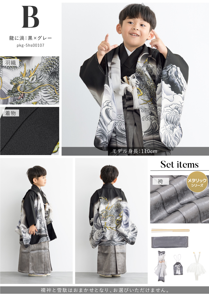- 七五三着物セット 着物袴セット 5歳袴セット 753 羽織袴 五歳向け おしゃれ きもの キモノ kimono 5才 キッズ 子供 ボーイズ 和装 前撮り 古典 レトロ 正統派 人気 簡単 身長105~115cm
