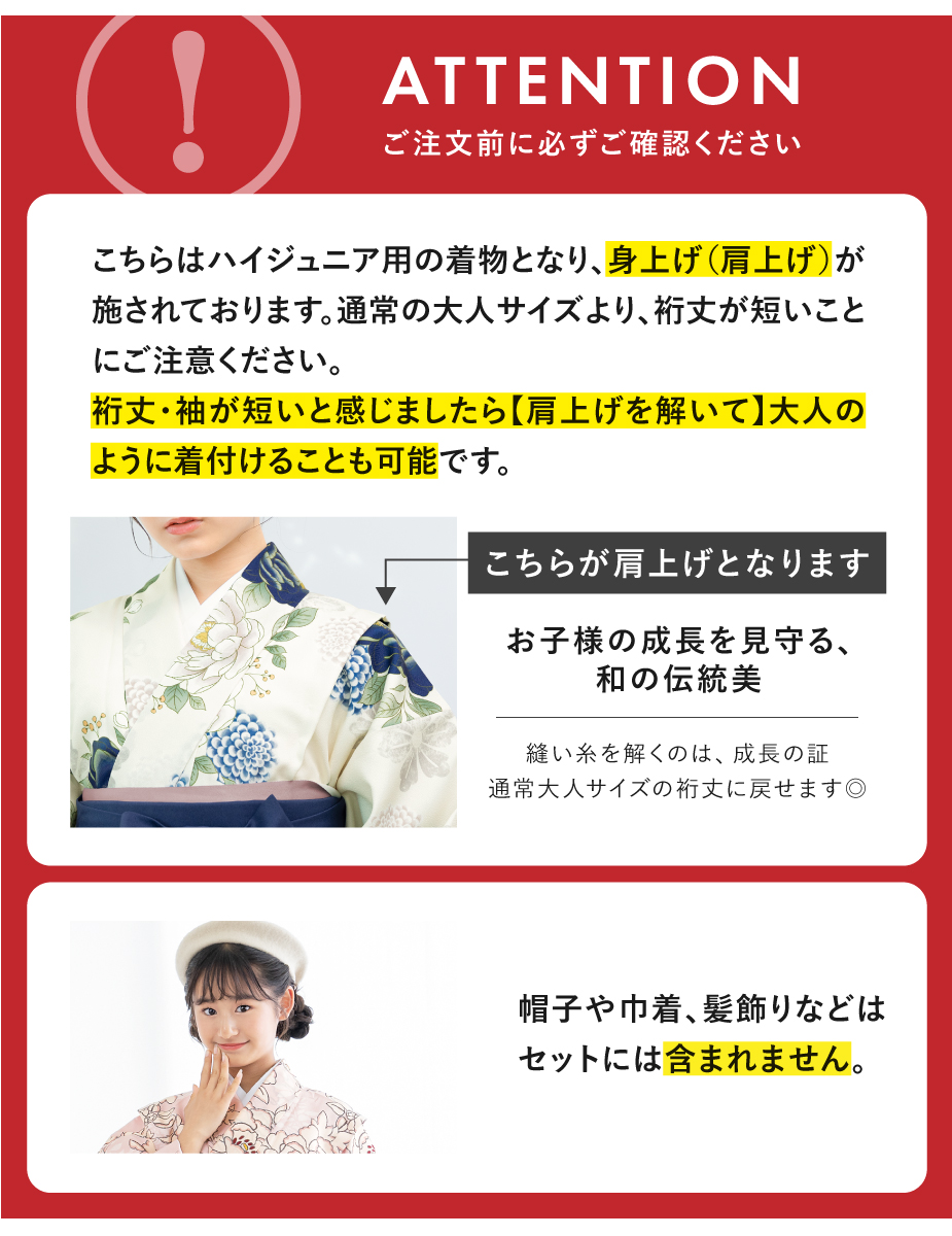 ※着物の柄部分は大きな生地を使用して作られておりますので、色や柄の出方、模様の配置等が画像と異なる場合がございます。