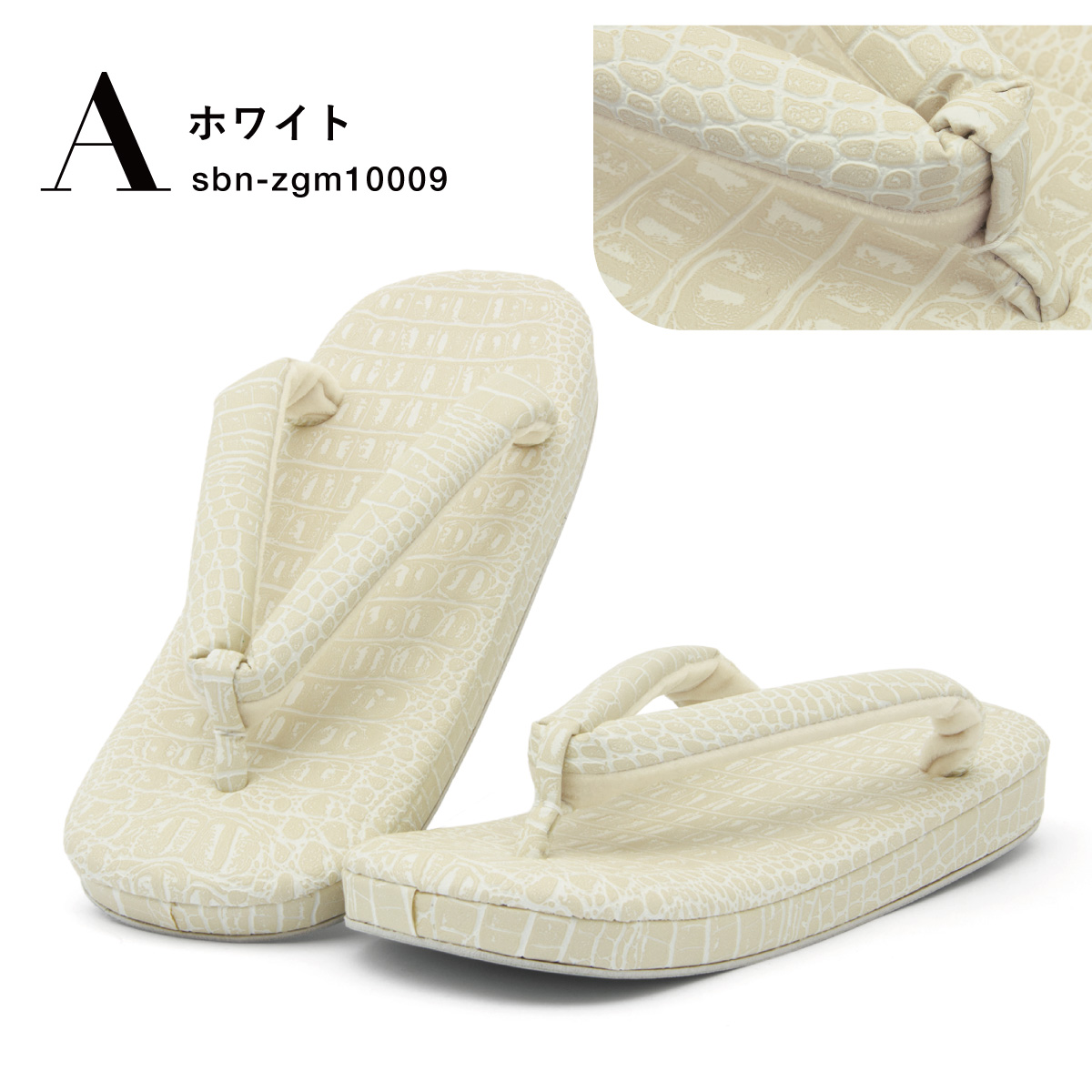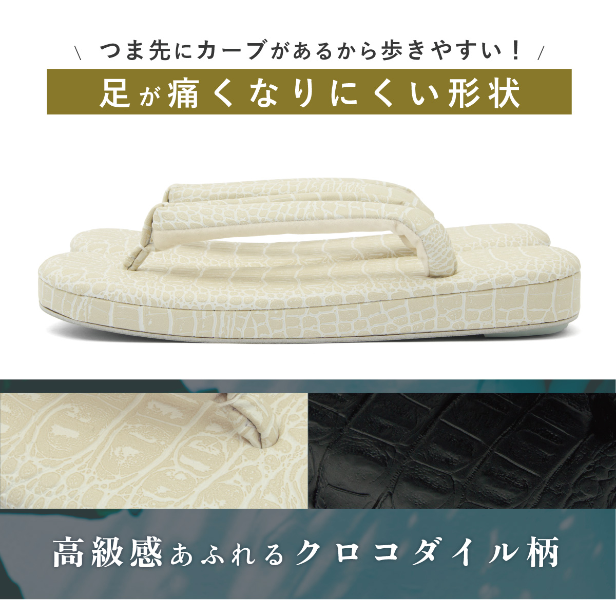 雪駄 メンズ クロコダイル調 ホワイト ブラック 白 黒 カジュアル サンダル 靴 紳士 男性用 男 和装 着物 浴衣 ゴム底 普段履き クール おしゃれ 草履 L LL