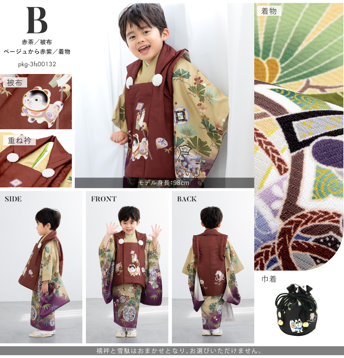 七五三 着物 被布コート セット 3歳 男の子 2025新作 モダン 和柄 くすみ 赤 茶 紫 緑 黒 紺 青 ピンク ベージュ ボーイズ 男児 3才 販売 購入
