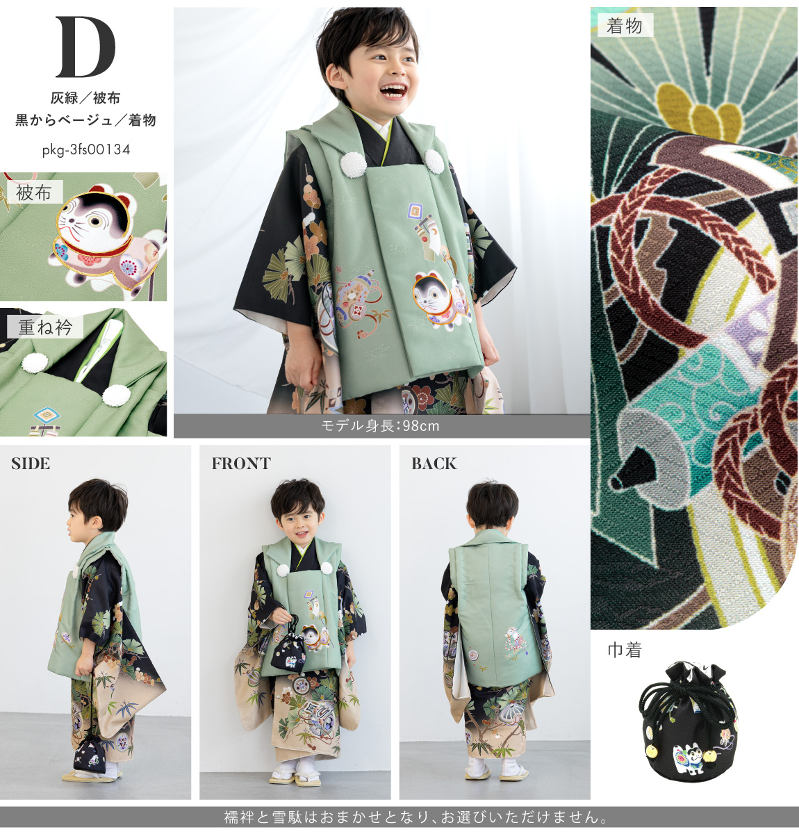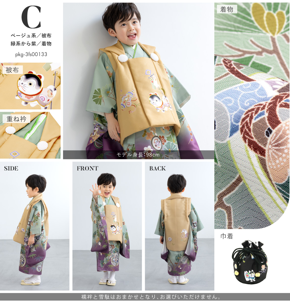 七五三を簡単・綺麗に!3歳男の子の被布着物セット