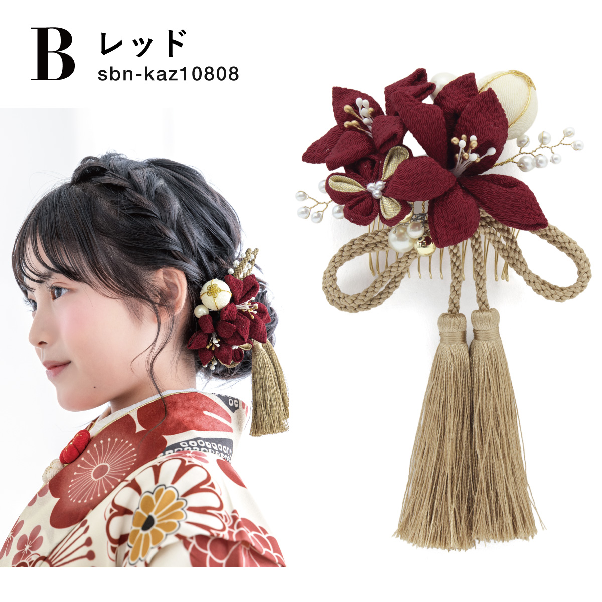 髪飾り 成人式 卒業式 赤 金 つまみ細工 ちりめん 組紐 花 オーガンジー フェイクパール ヘアアクセサリー ヘアアクセ 髪留め 振袖 袴
