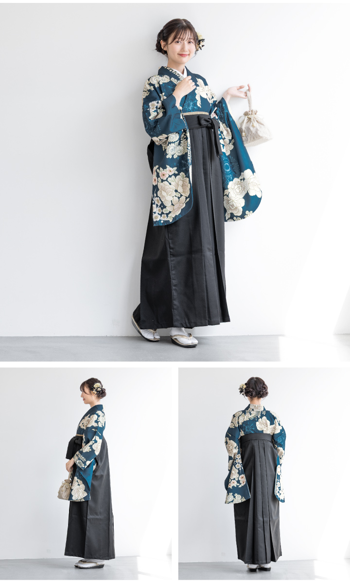袴セット 卒業式 大学生 レディース 女性 女の子 小学生 ジュニア 袴 4点セット floro 緑 紺 白 赤 黒 ピンク 梅 椿 花 二尺袖 着物 襦袢 帯 販売 創美苑