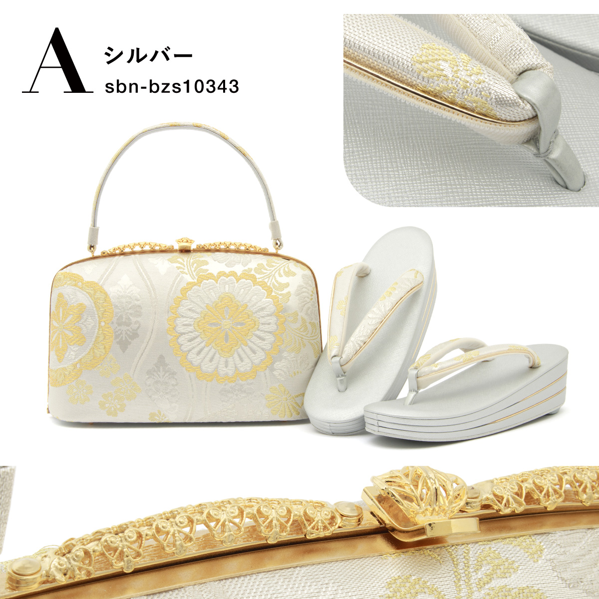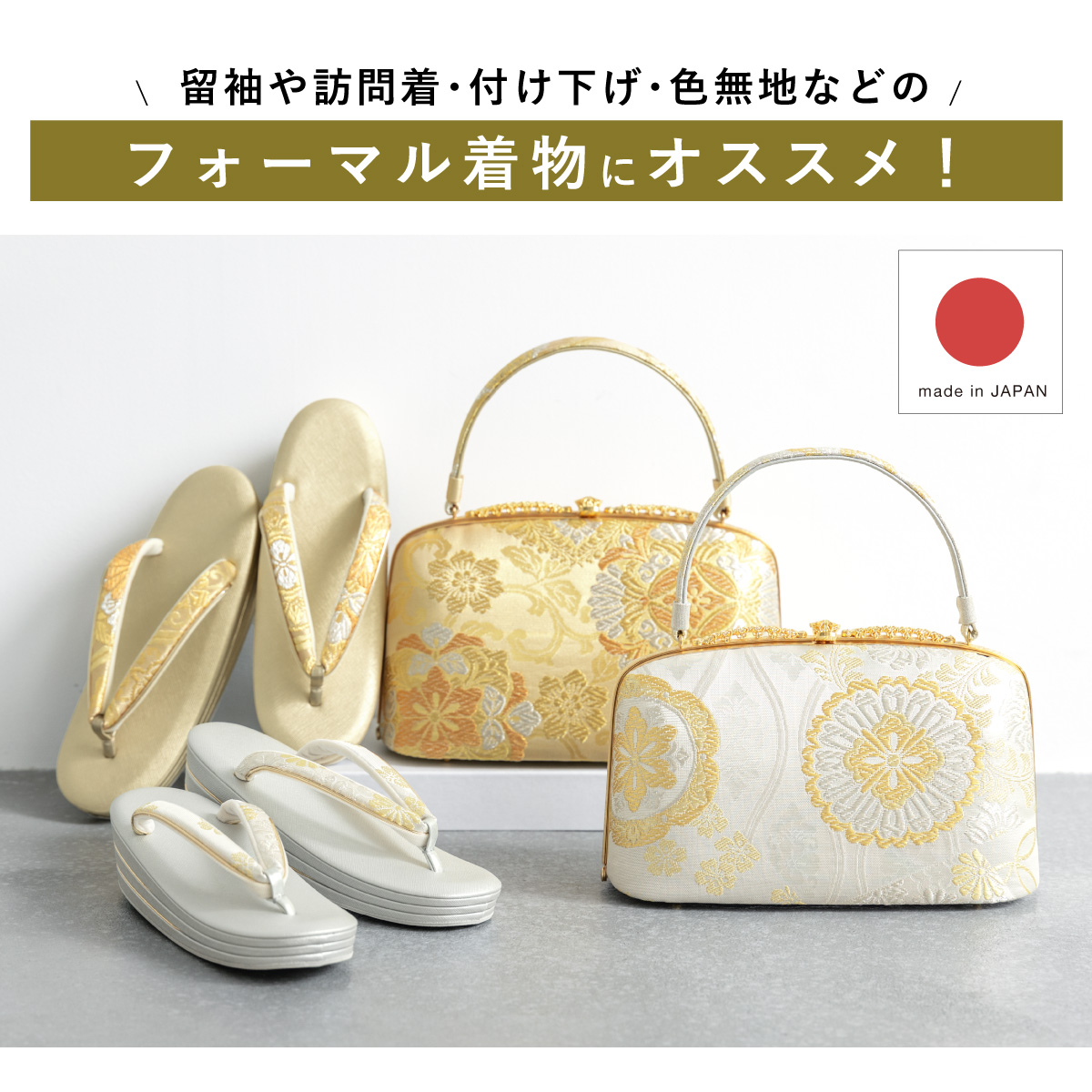草履バッグセット レディース フォーマル 留袖 訪問着 付下げ 礼装 着物 和装 流水七宝 花唐草 優花緒 三枚芯 金 銀 M L 日本製 送料無料