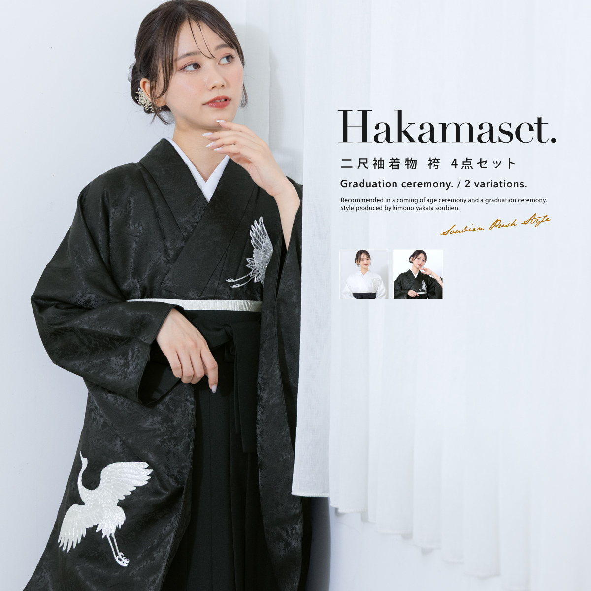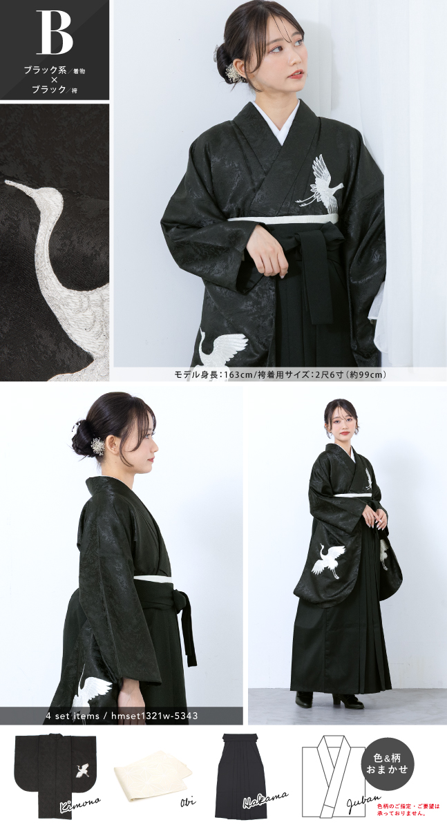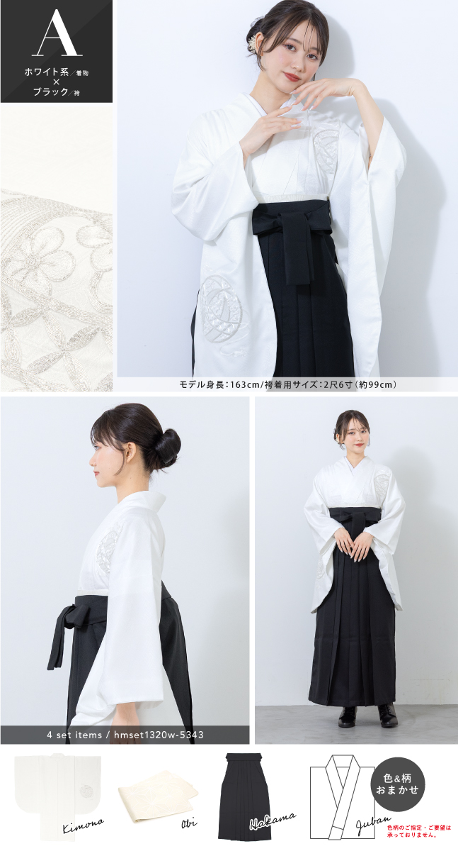 袴セット 卒業式 レディース 女の子 ジュニア 子供 4点セット 着物セット 白 黒 ホワイト ブラック 刺繍 手鞠 鶴 シンプル 大学卒業式 購入 販売 創美苑
