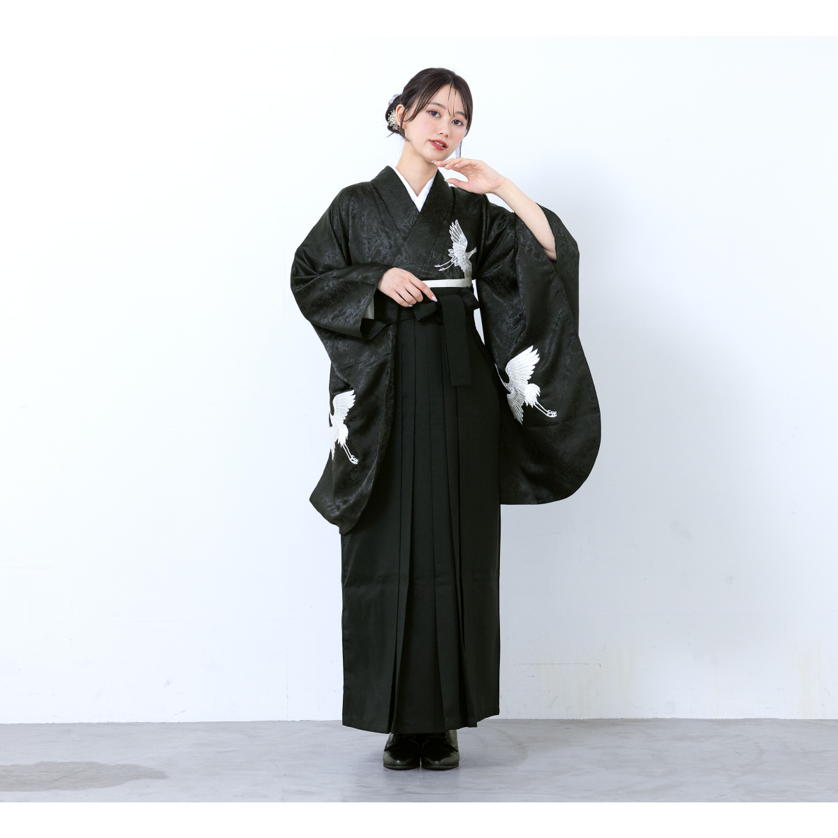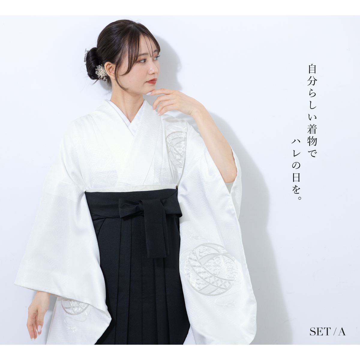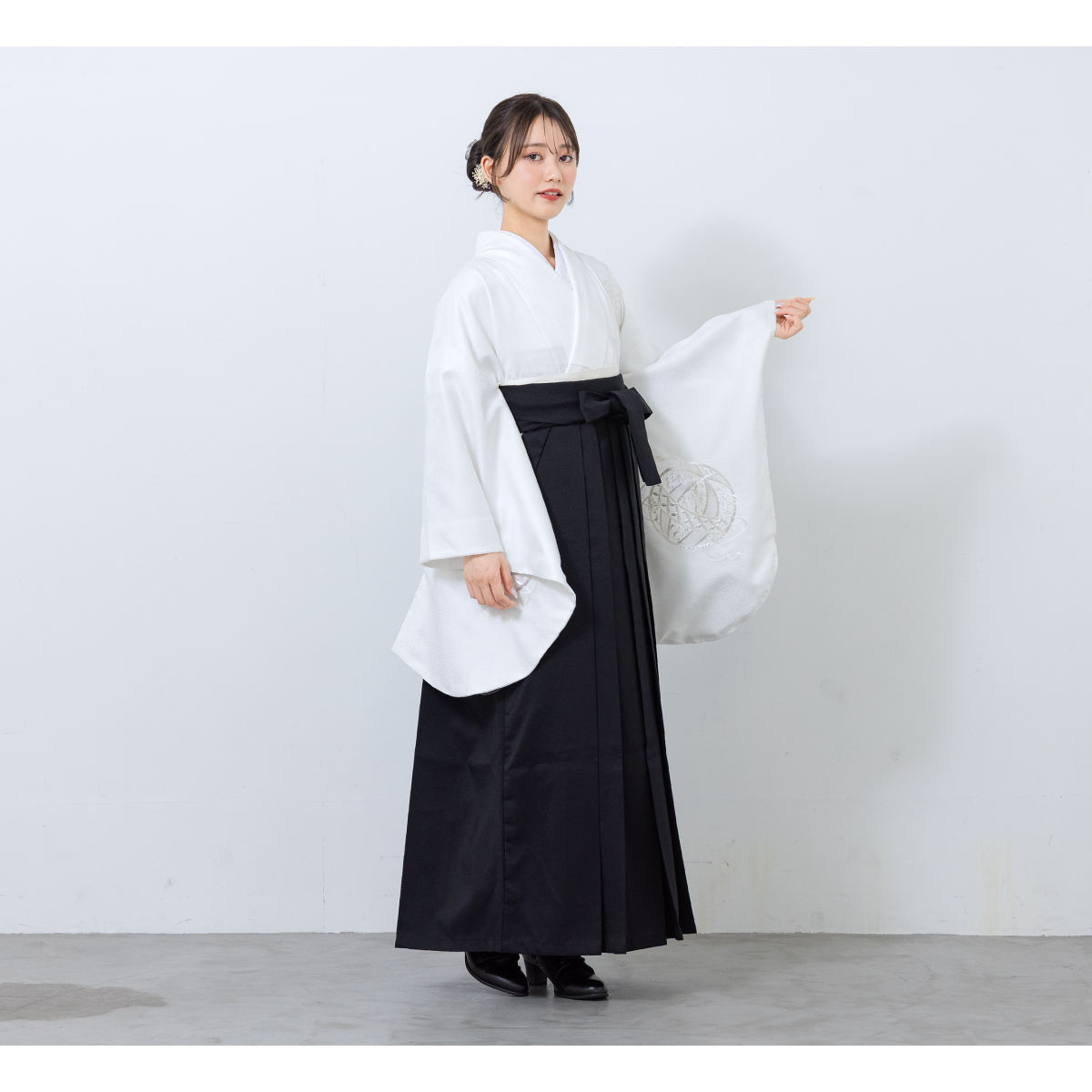 袴セット 卒業式 レディース 女の子 ジュニア 子供 4点セット 着物セット 白 黒 ホワイト ブラック 刺繍 手鞠 鶴 シンプル 大学卒業式 購入 販売 創美苑