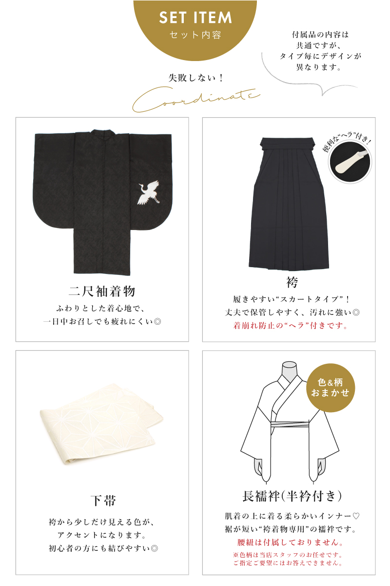 着物、袴、襦袢(半衿付き)、下帯