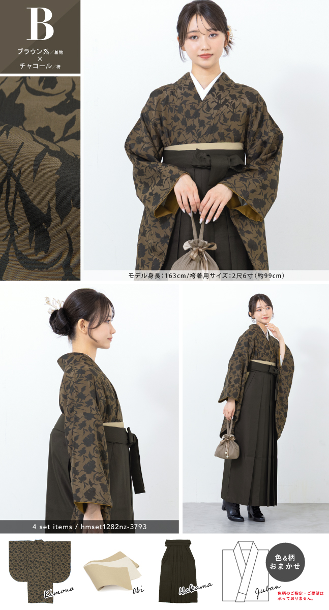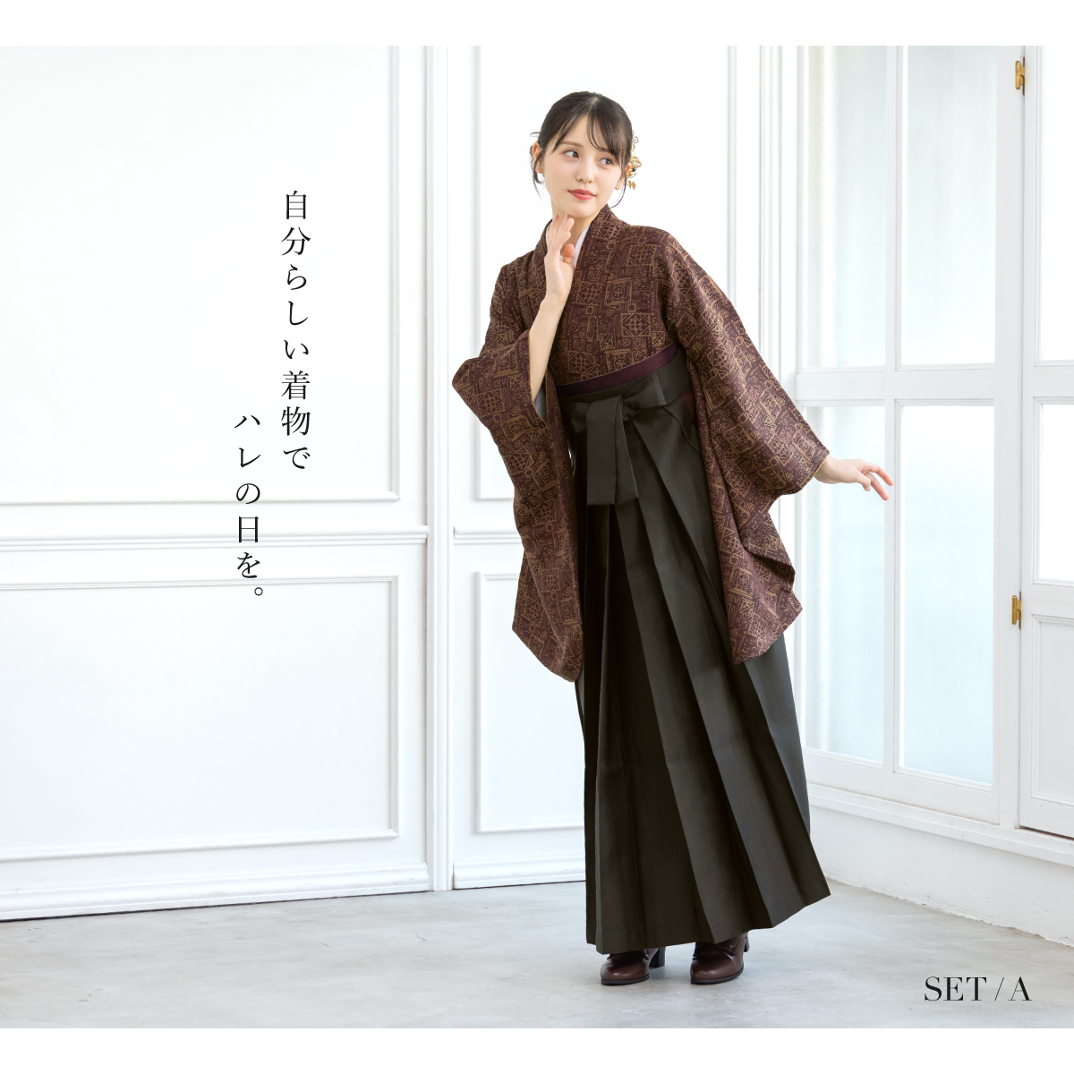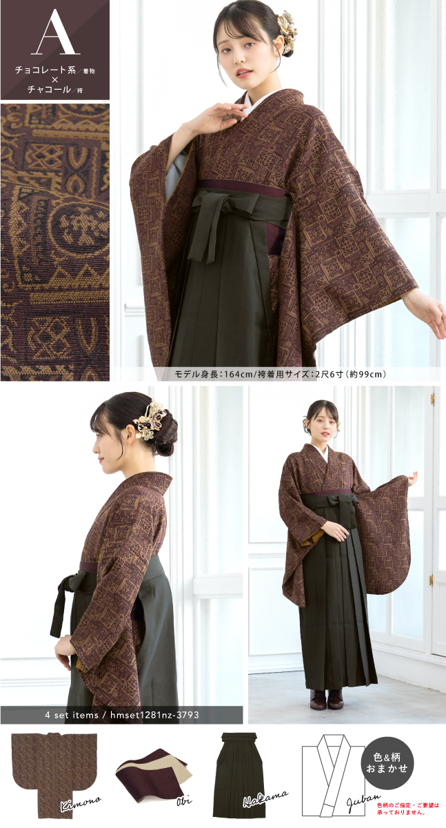 袴セット 卒業式 レディース 女の子 ジュニア 子供 4点セット 着物セット 茶色 ブラウン チョコレート グレー アンティーク風 大学卒業式 購入 販売 創美苑