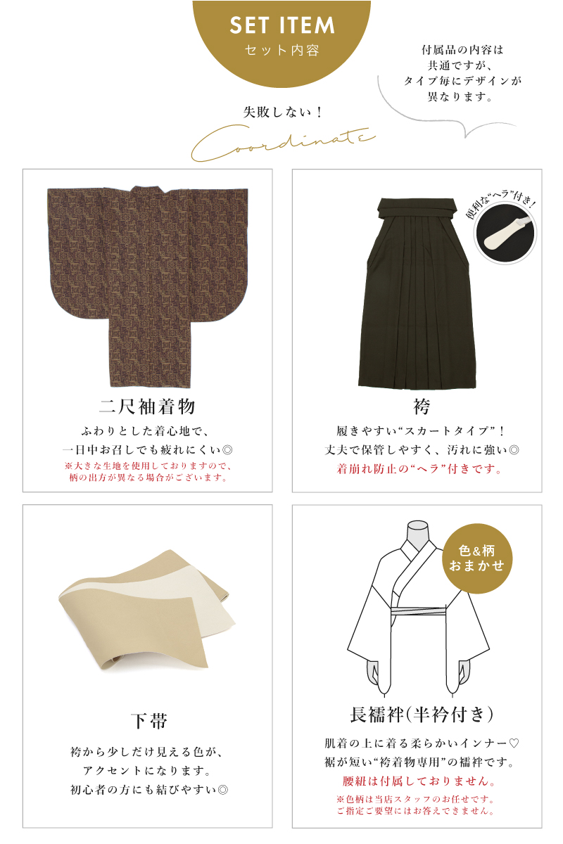 ※襦袢の色柄はご指定いただけません。また腰紐は付属しません。あらかじめご了承ください。