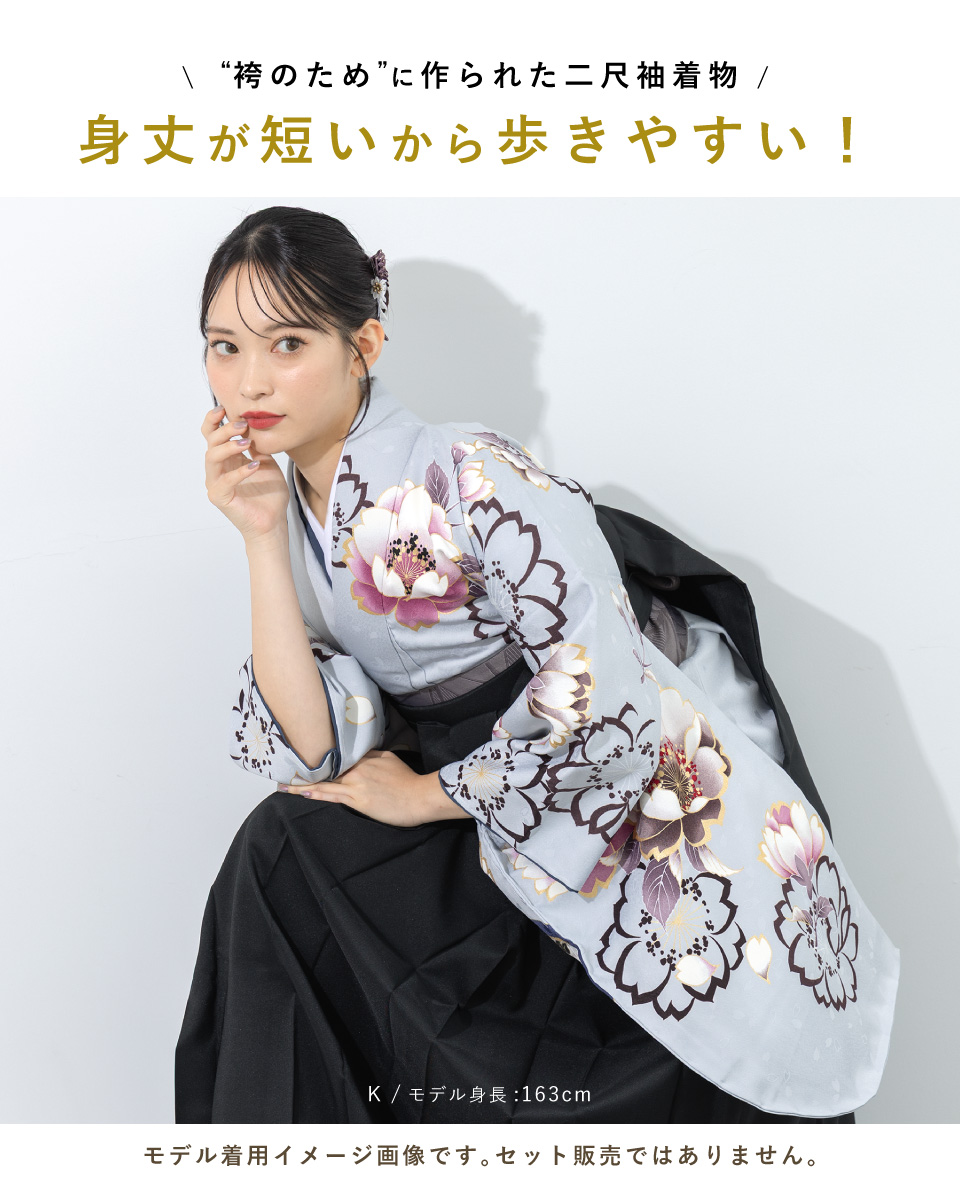 二尺袖着物 単品 レディース 女性 大人 卒業式 袴 小振袖 袴用 絵羽柄 白 黒 灰 茶 赤 緑 ピンク ベージュ 牡丹 鶴 モダン 花柄 ショート丈