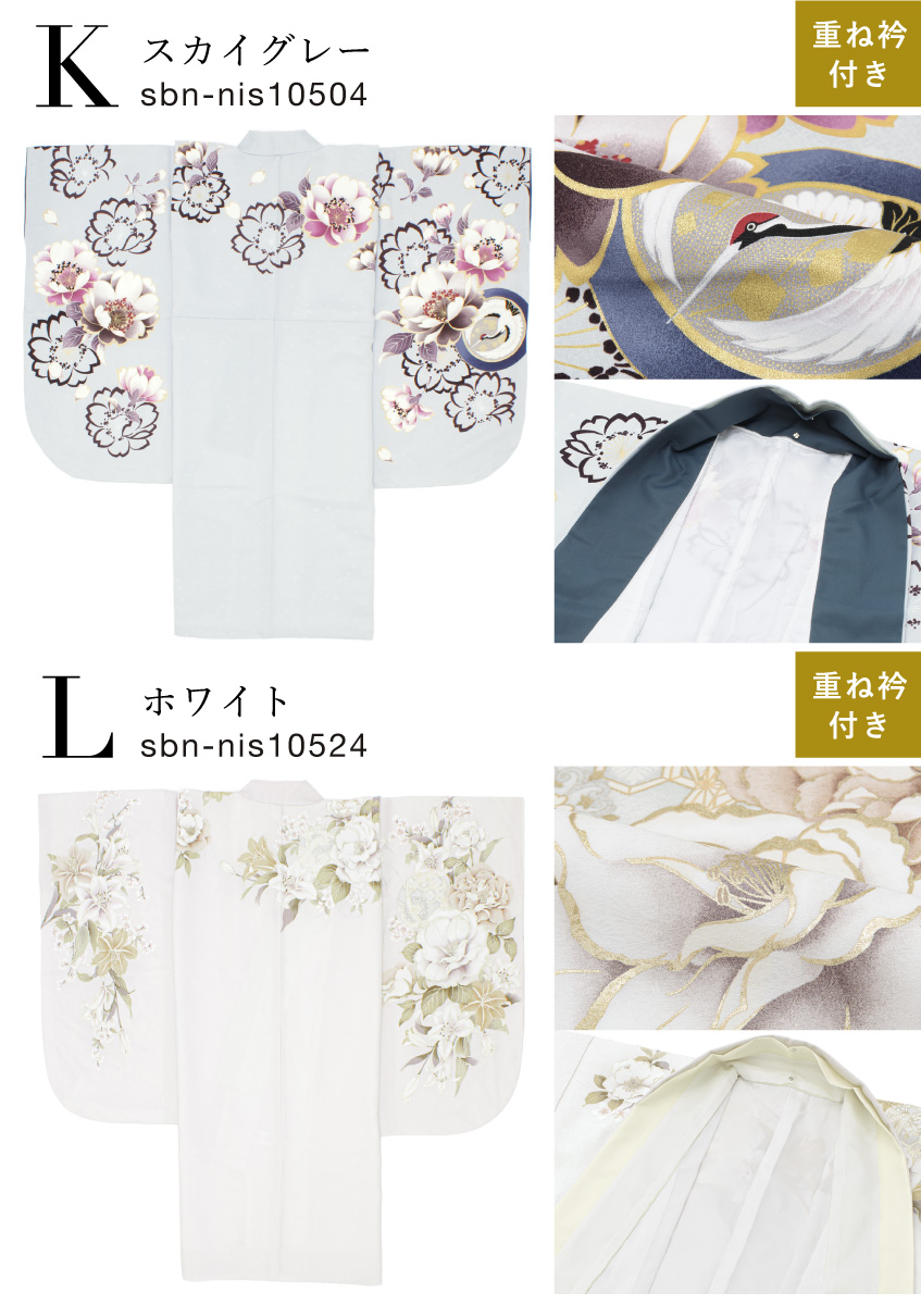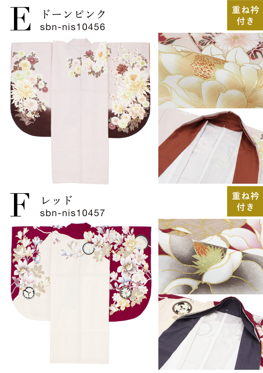 ※着物の柄部分は大きな生地を使用して作られておりますので、色や柄の出方、模様の配置等が画像と異なる場合がございます。