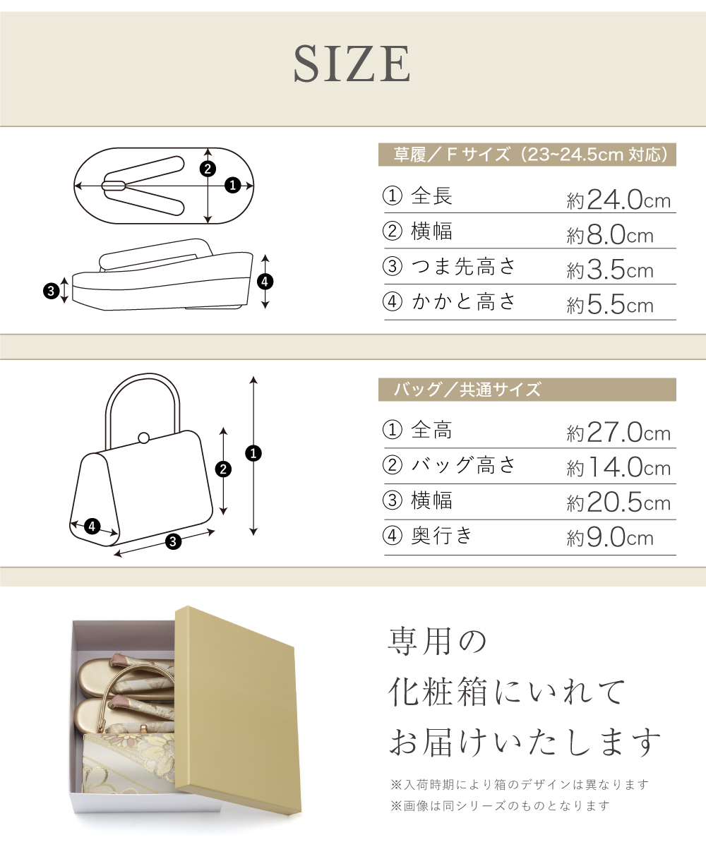 - 和装バッグ 草履バッグ セット バッグセット 礼装 結婚式 七五三 お宮参り 入学式 卒業式 高級感 ゾーリ 履物 下駄 和装 女性 留袖 訪問着 付け下げ 色無地 着物 ぞうり 23~24.5cm対応