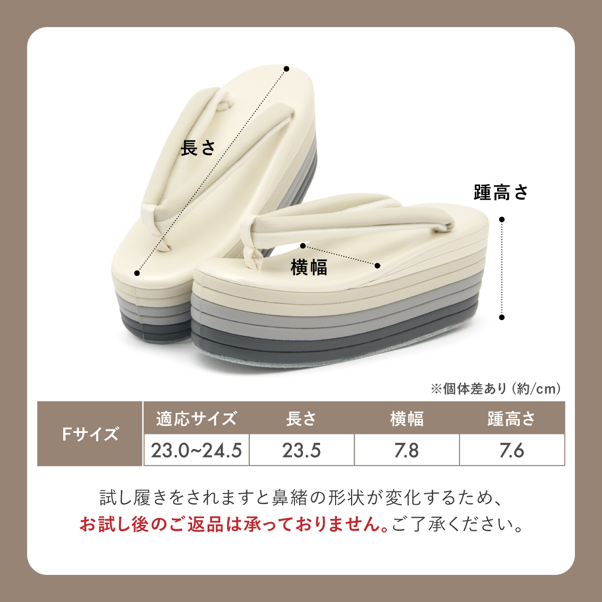 ※草履や下駄などの履物は、試し履きをされますと鼻緒の形状が変化するため、お試し後のご返品は承っておりません。ご注意ください。