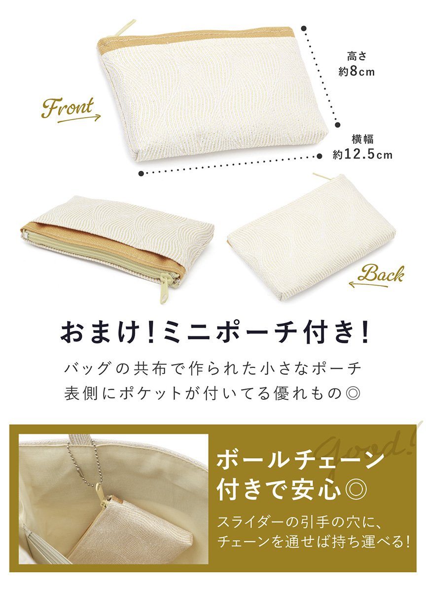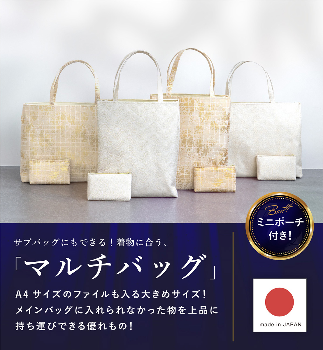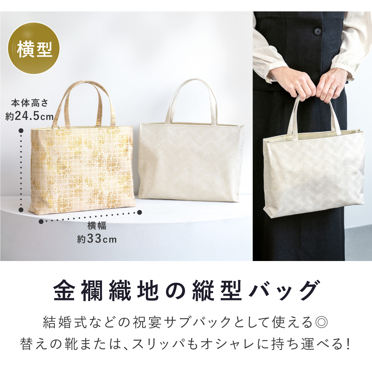 バッグ ハンドバッグ 単品 レディース 縦型 横型 A4対応 フォーマル 金 銀 白 金襴織地 和洋兼用 ミニポーチ付き サブバッグ 大きめ 日本製 送料無料