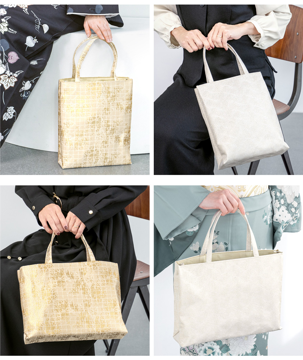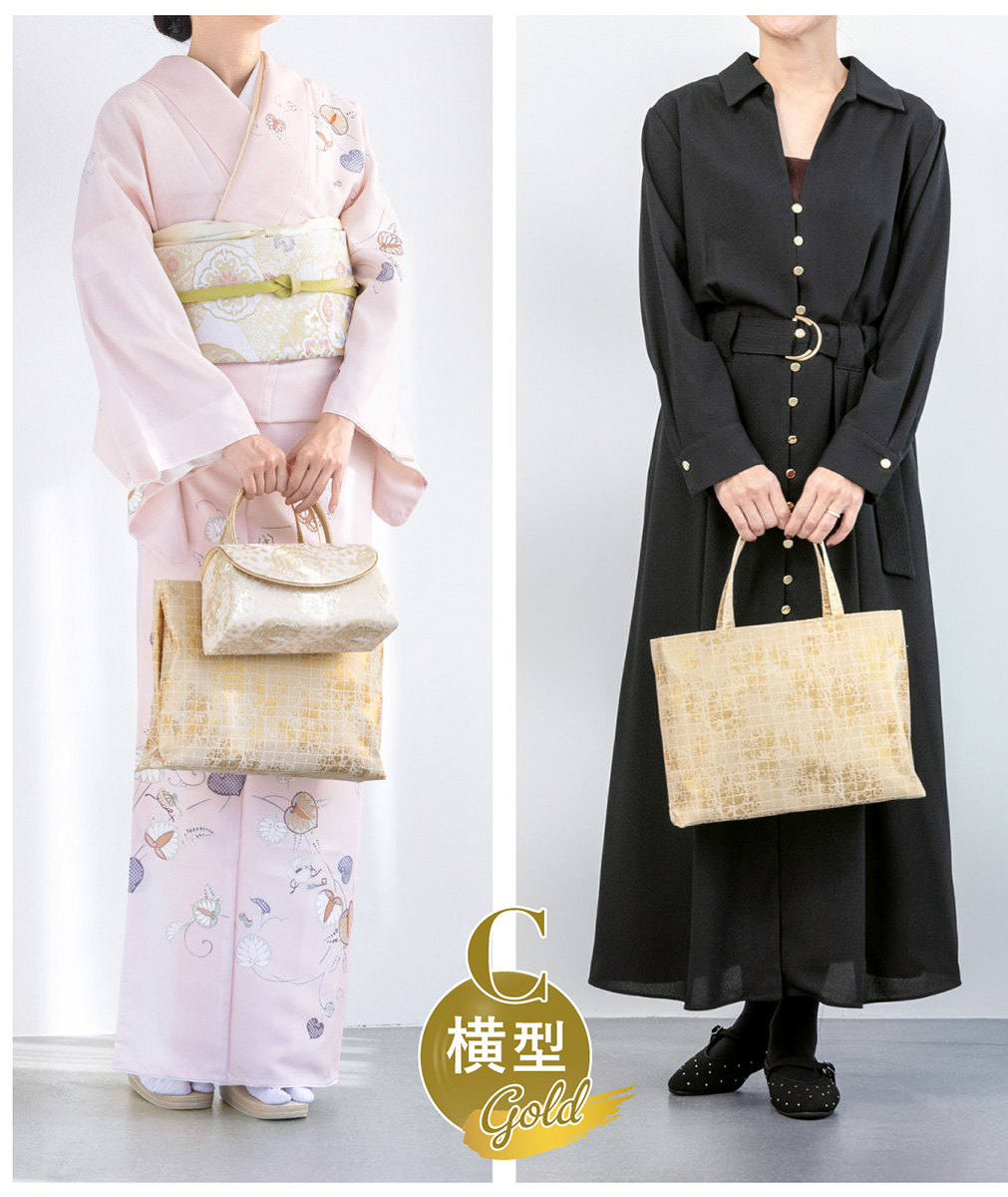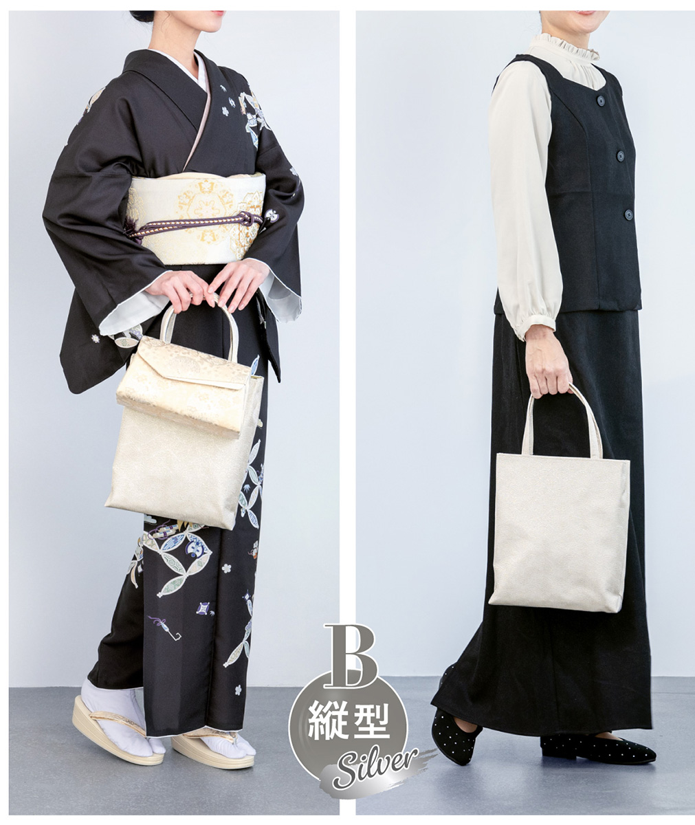 バッグ ハンドバッグ 単品 レディース 縦型 横型 A4対応 フォーマル 金 銀 白 金襴織地 和洋兼用 ミニポーチ付き サブバッグ 大きめ 日本製 送料無料