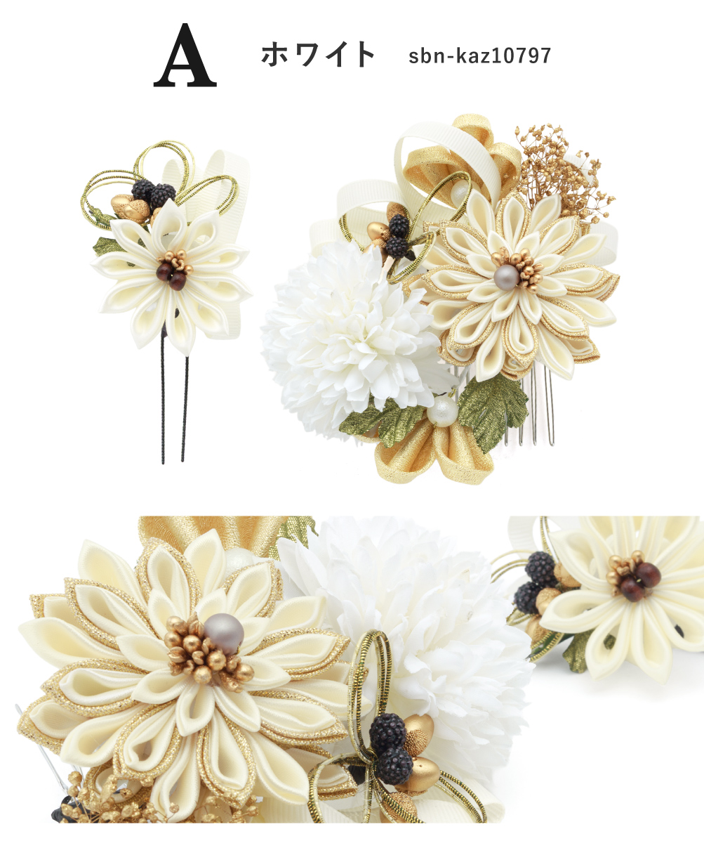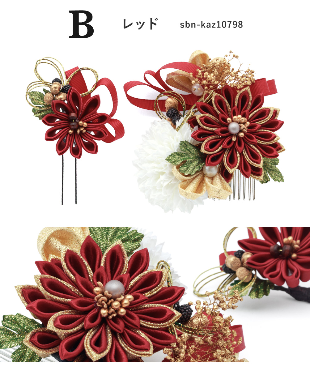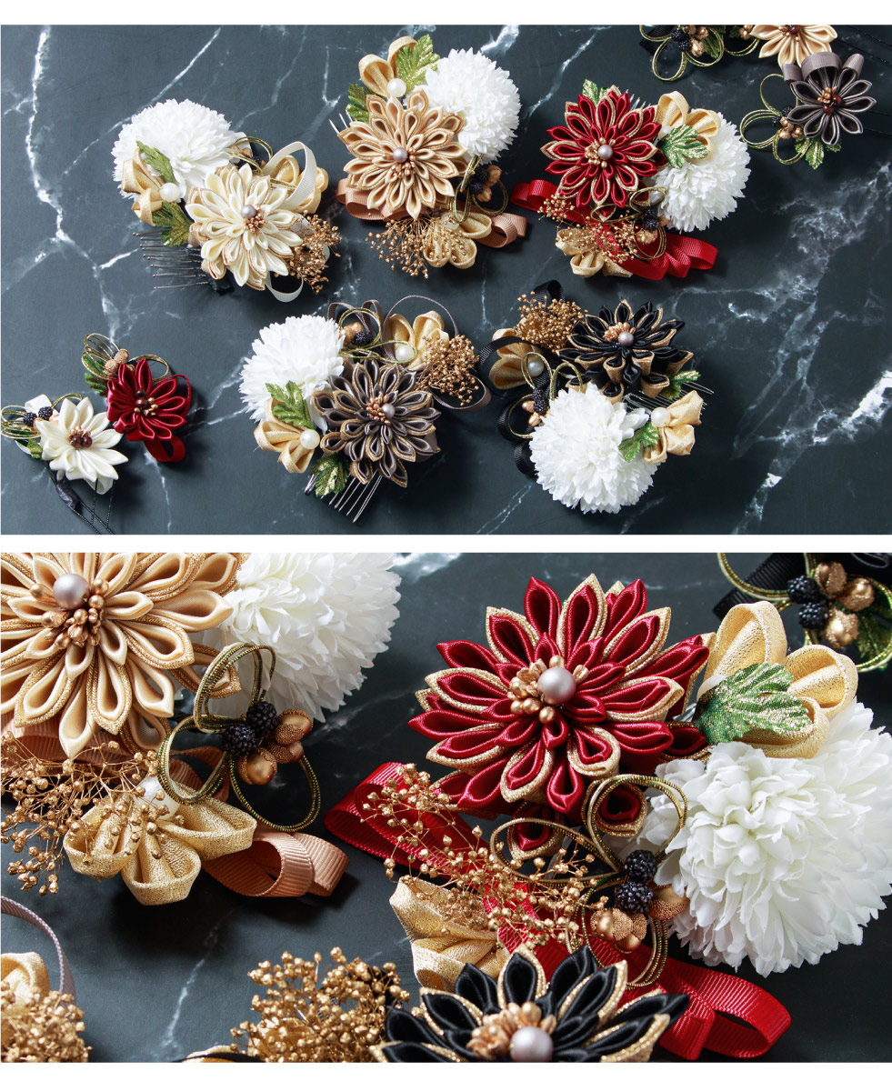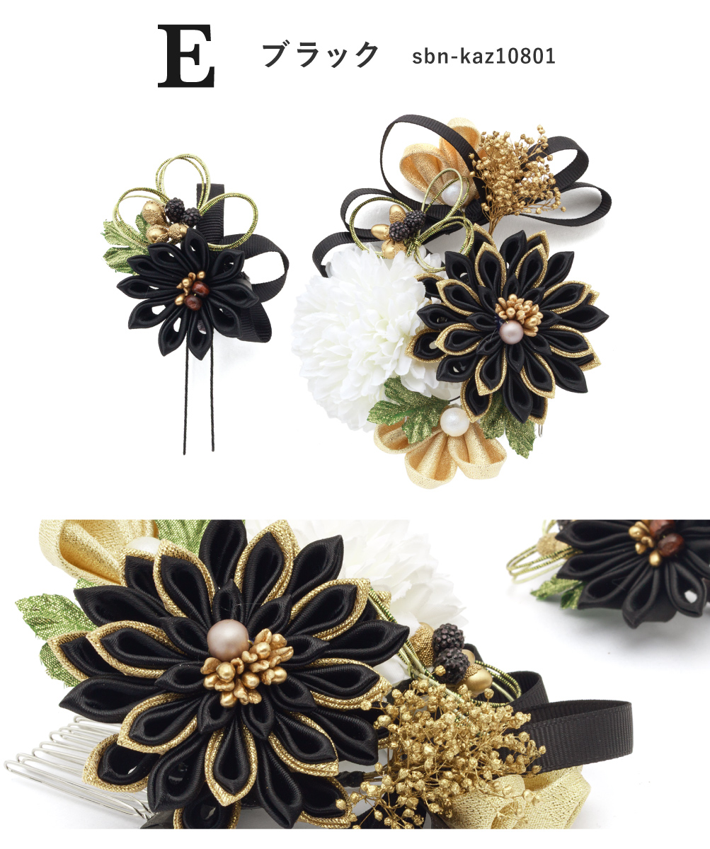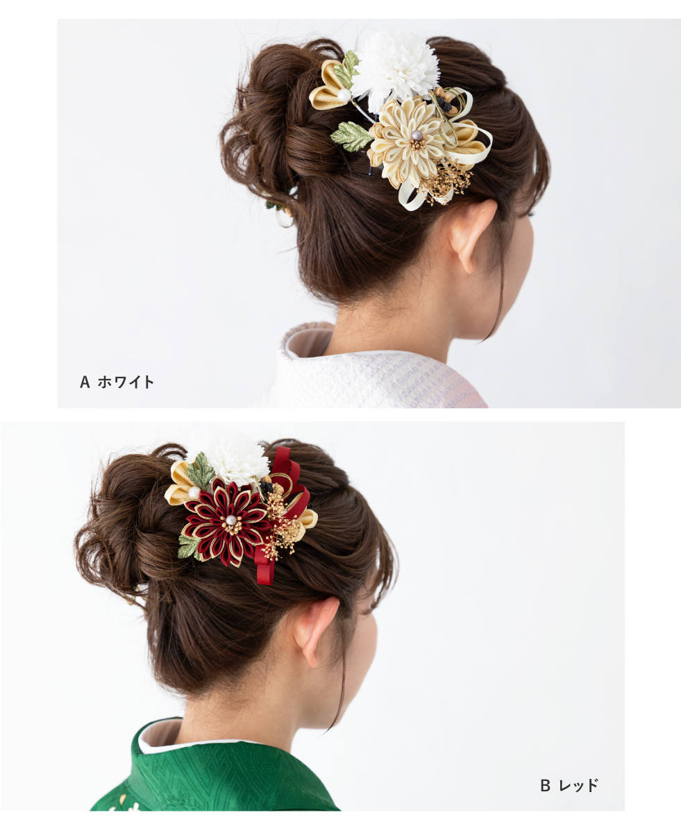 髪飾り 2点セット 卒業式 成人式 振袖 袴 着物 ホワイト レッド ゴールド グレー ブラック 赤 黒 つまみ細工 水引 花 かすみ草 リボン 和洋兼用 盛装 ヘアアレンジ 振袖小物 和装小物 送料無料