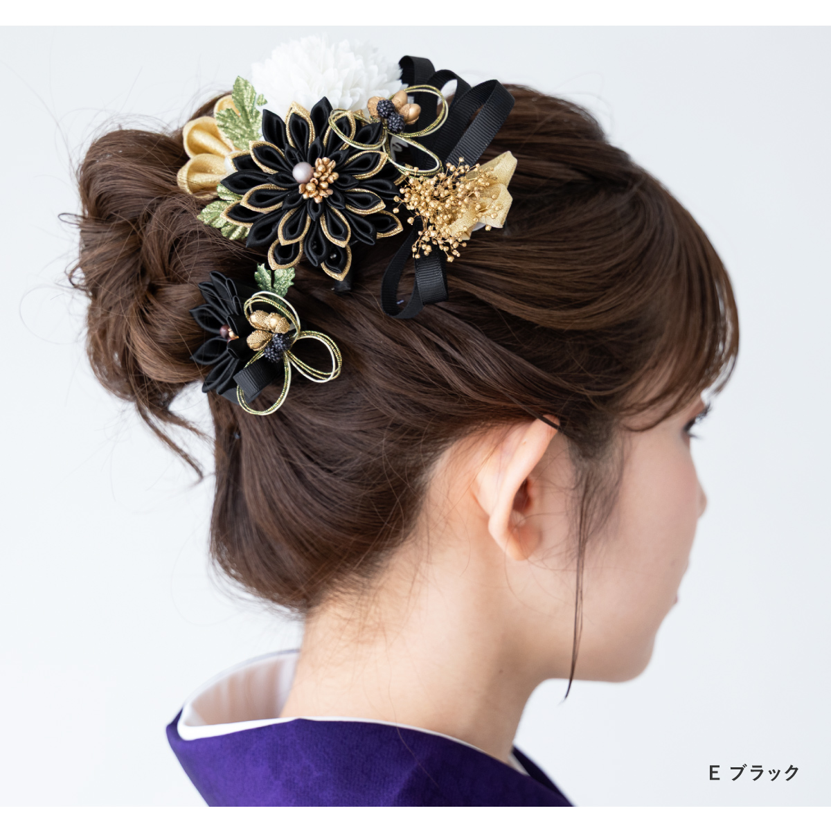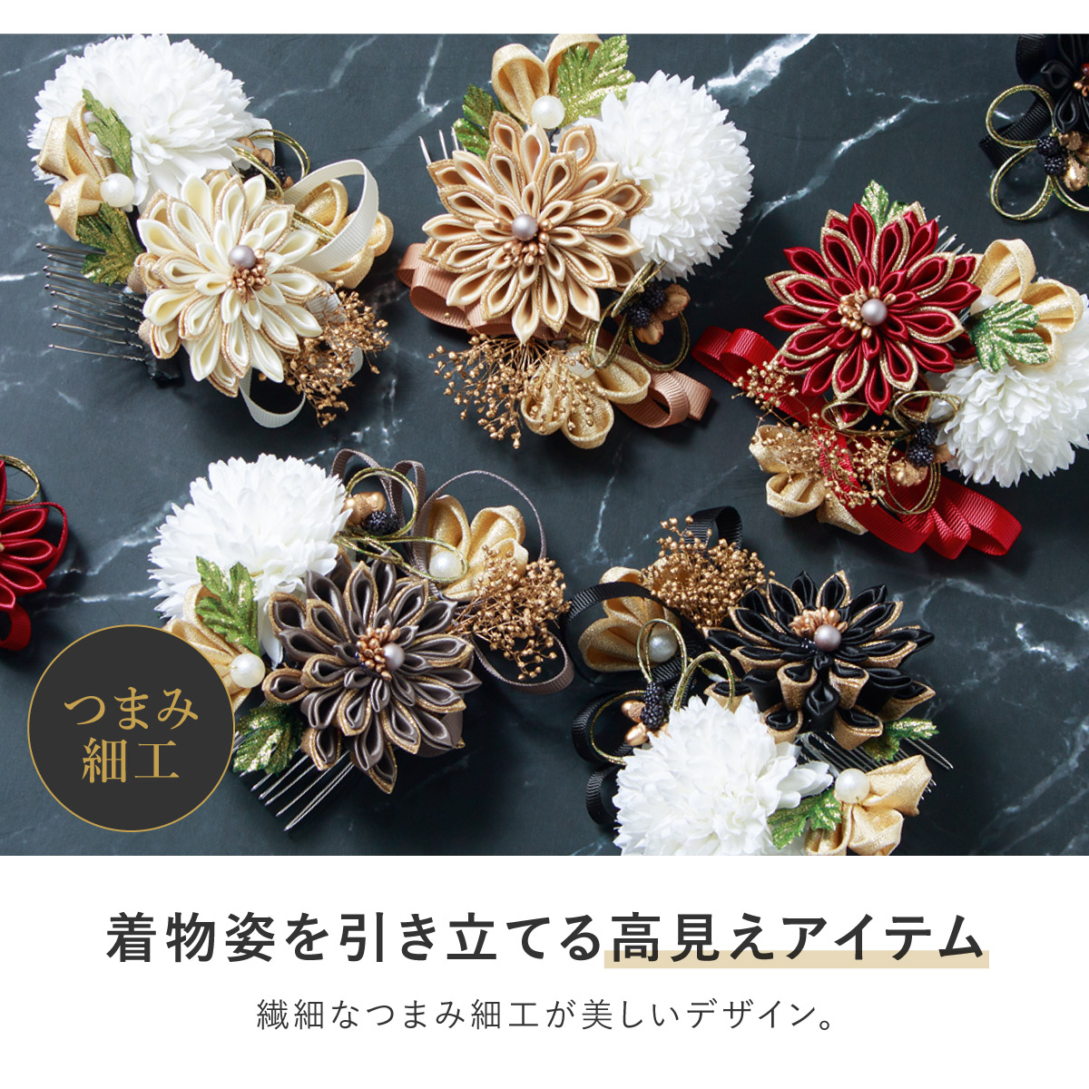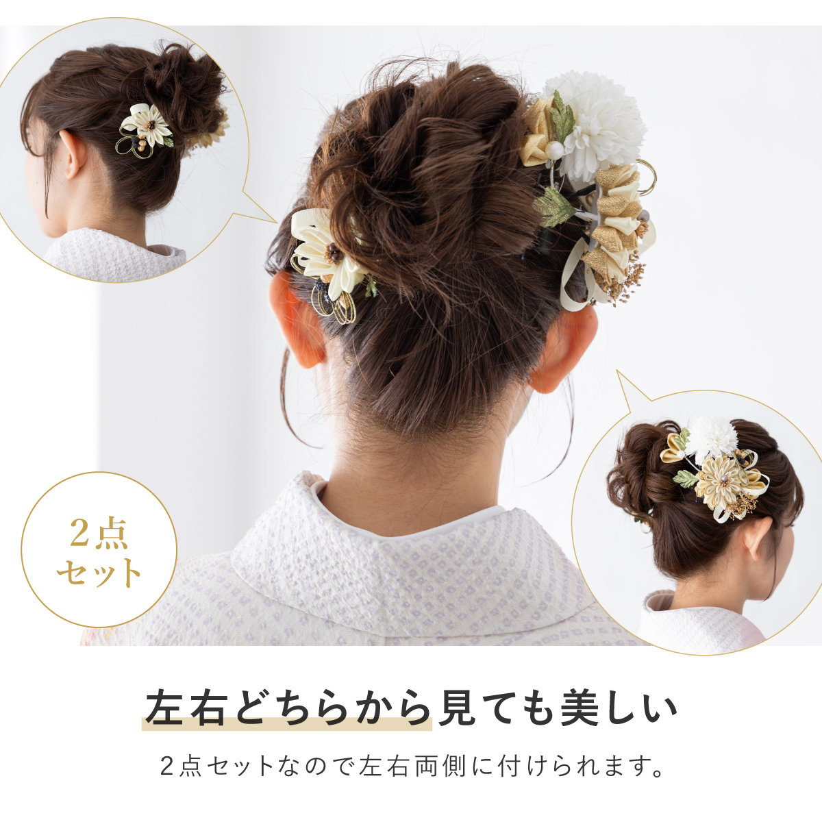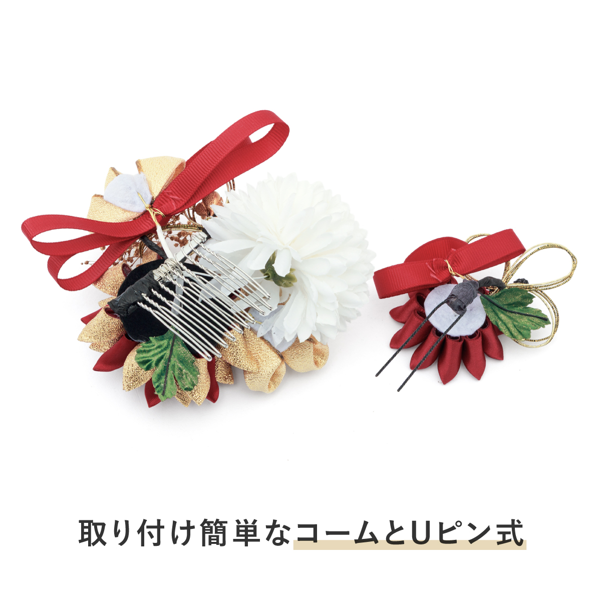 髪飾り 2点セット 卒業式 成人式 振袖 袴 着物 ホワイト レッド ゴールド グレー ブラック 赤 黒 つまみ細工 水引 花 かすみ草 リボン 和洋兼用 盛装 ヘアアレンジ 振袖小物 和装小物 送料無料