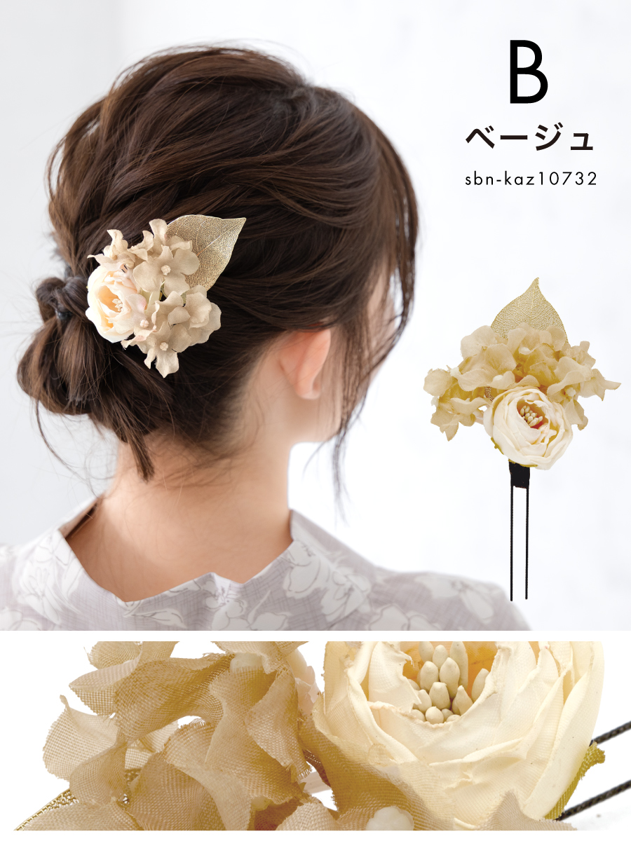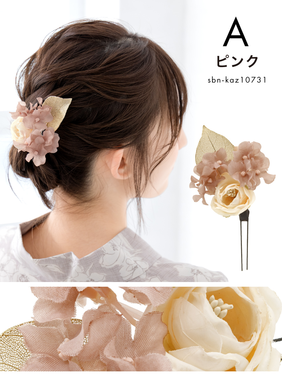 髪飾り 単品 卒業式 成人式 振袖 袴 浴衣 着物 ピンク ベージュ モダン ドライフラワー調 リーフ 小ぶり 小さめ ワンポイント ちょい足し 和洋兼用 盛装 ヘアアレンジ 振袖小物 和装小物