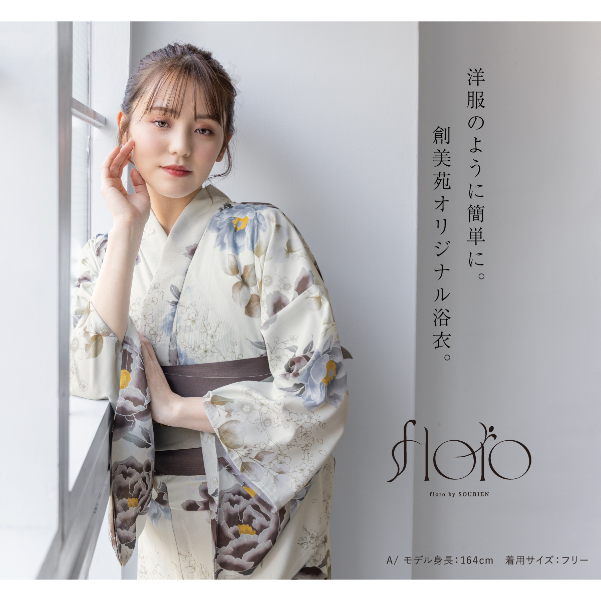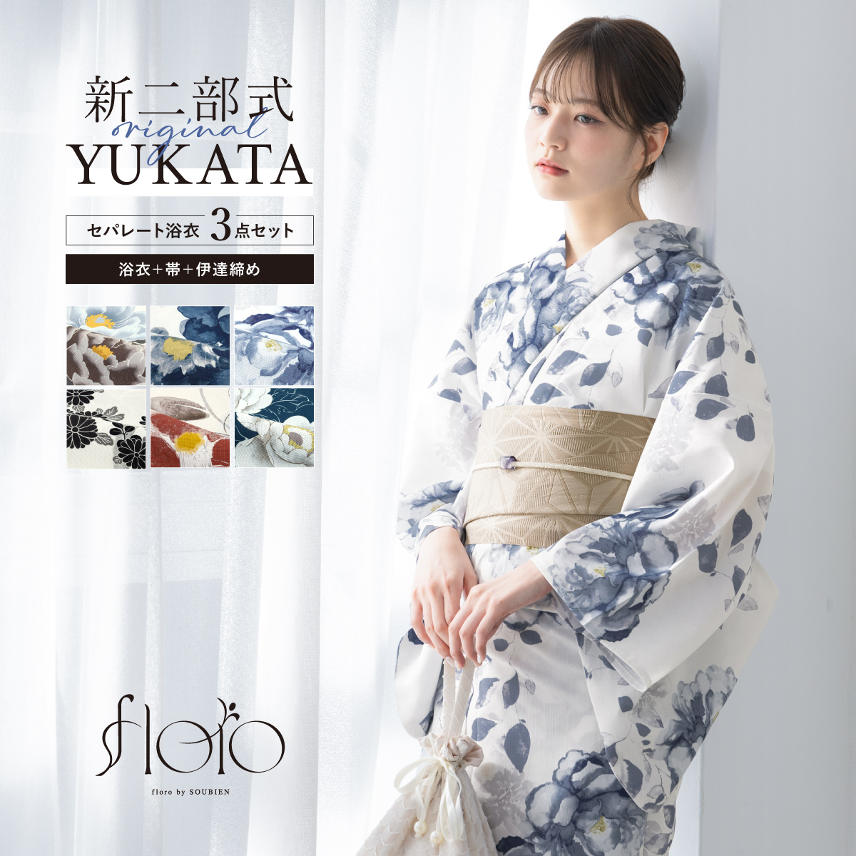 SOUBIENのプライベートブランド『floro by SOUBIEN』(フローロ)の浴衣を合わせた華やかな浴衣セットです。『floro by SOUBIEN』は、移りゆく和装トレンドの最先端を常に追い求め「欲しい」「着てみたい」を作り出す、SOUBIENのプライベートブランドです。ジャンルや系統に縛られず、あらゆるシーンに求められる和装スタイルを展開し、今流行りを押さえ、和装のお洒落を魅せたいという想いをコンセプトに真心を込めて作りました。