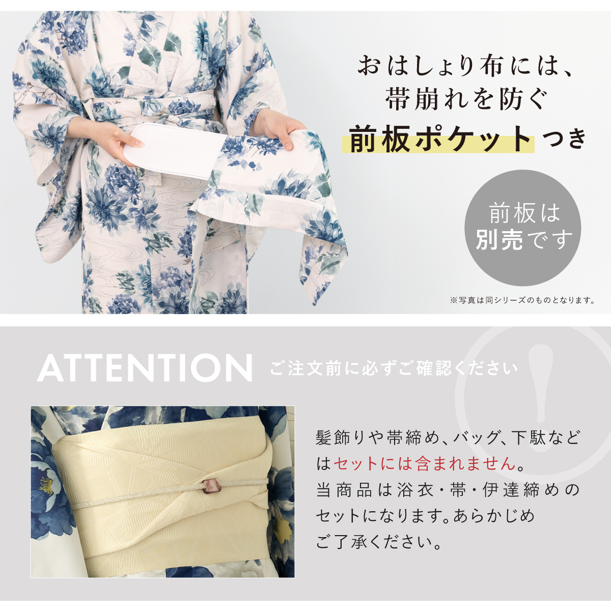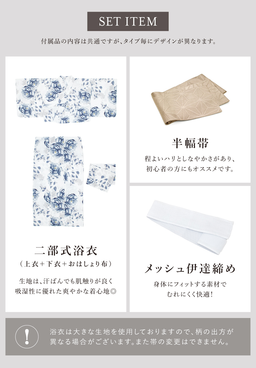 ※製造の都合上、浴衣とおはしょり布の色味が若干異なる場合があります。