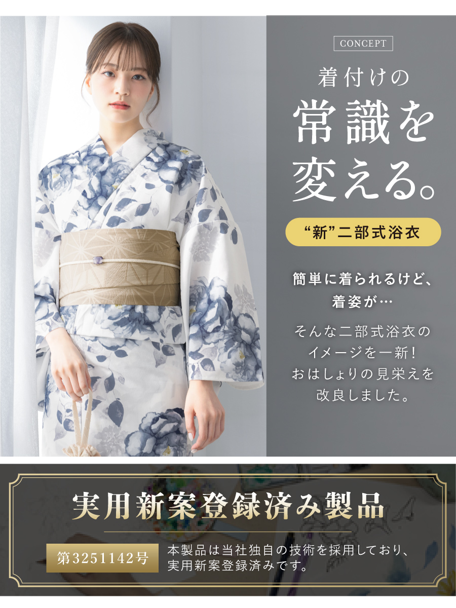 - 初心者でもプロの着姿!簡単に着れる新二部式浴衣 安心 着付け yukata ゆかた ユカタ 上品 大人 吸水速乾 人気 女性 綺麗 フェミニン 和装 10代 20代 30代 40代 women 夏着物 レトロ 柄