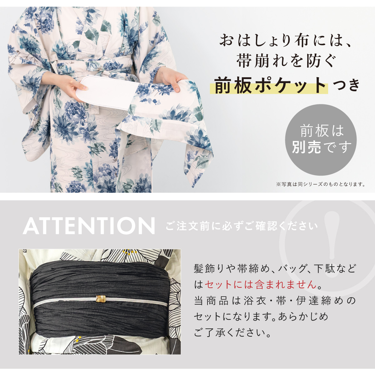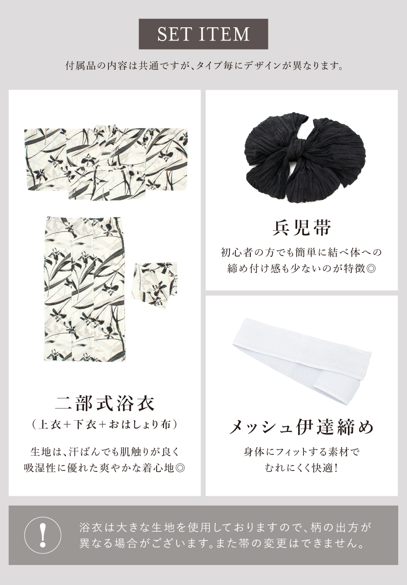 ※製造の都合上、浴衣とおはしょり布の色味が若干異なる場合があります。