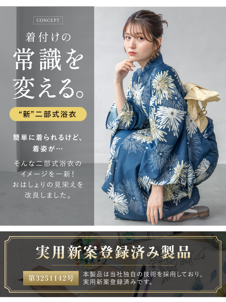 - 初心者でもプロの着姿!簡単に着れる新二部式浴衣 安心 着付け yukata ゆかた ユカタ 上品 大人 吸水速乾 人気 女性 綺麗 フェミニン 和装 10代 20代 30代 40代 women 夏着物 レトロ 柄